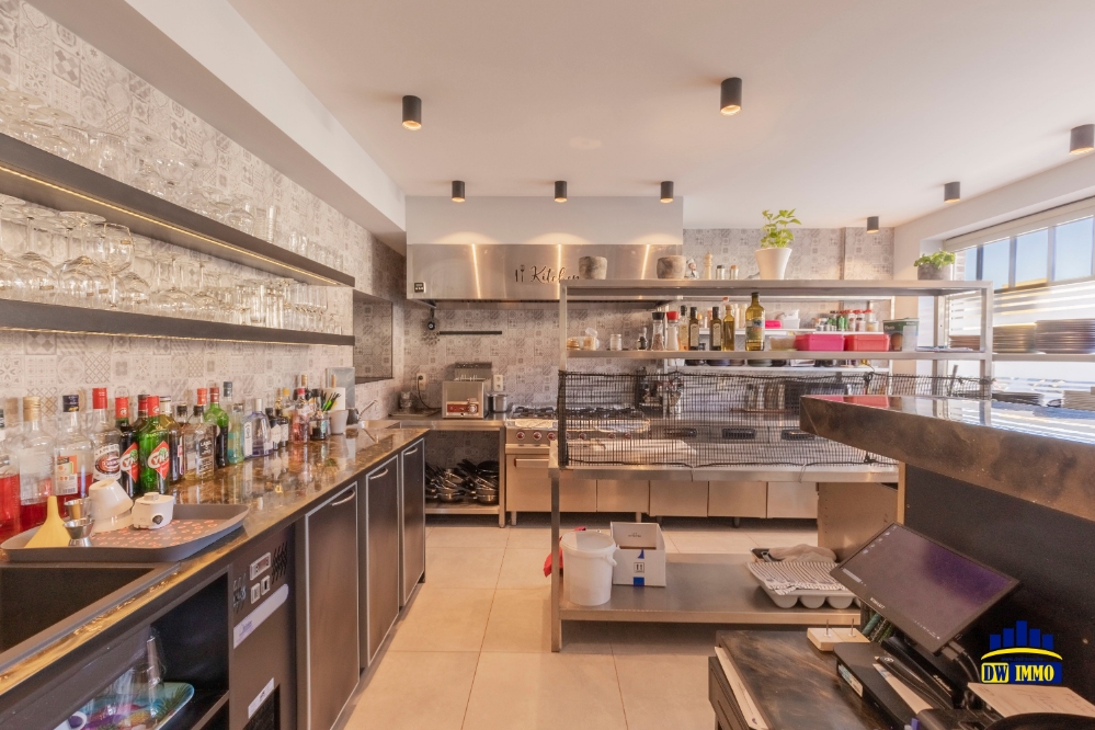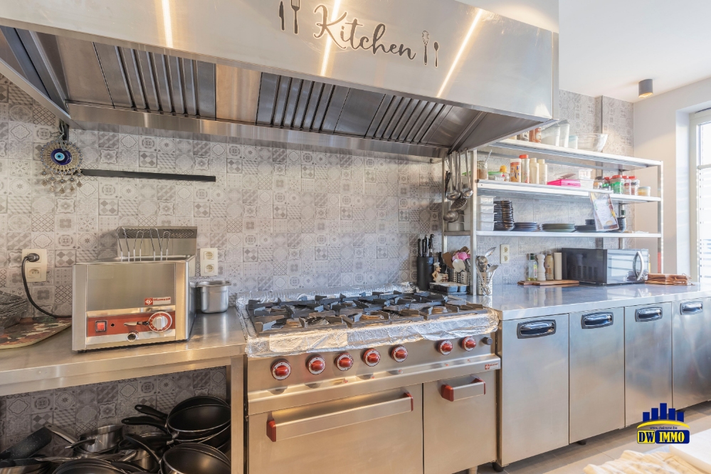 - Moderne keukeninrichting: Uitgerust met een 6-pits gasvuur, pasta kokers, dampkap, voldoende koelingen, inox werktafels, een ijsblokjesmachine, glazenwasser en meer.