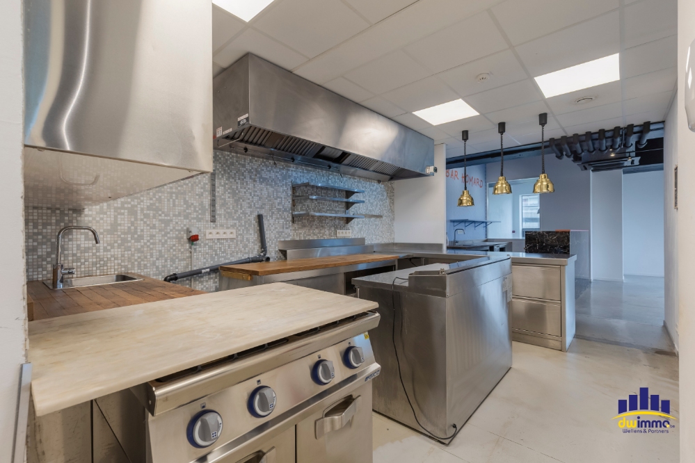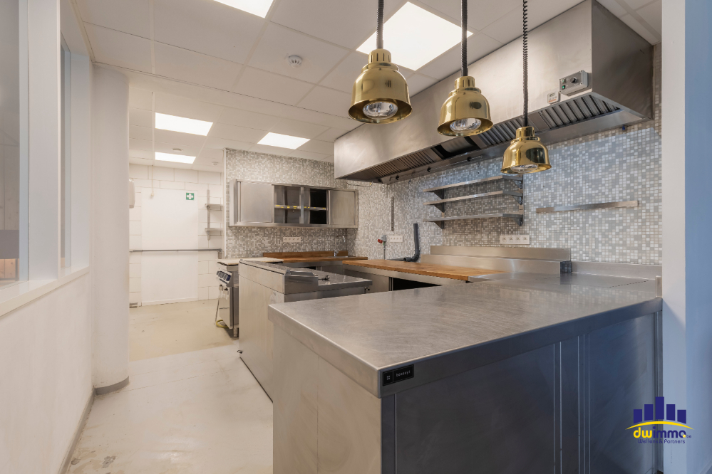 - Volledig uitgeruste industriële keuken, inclusief: