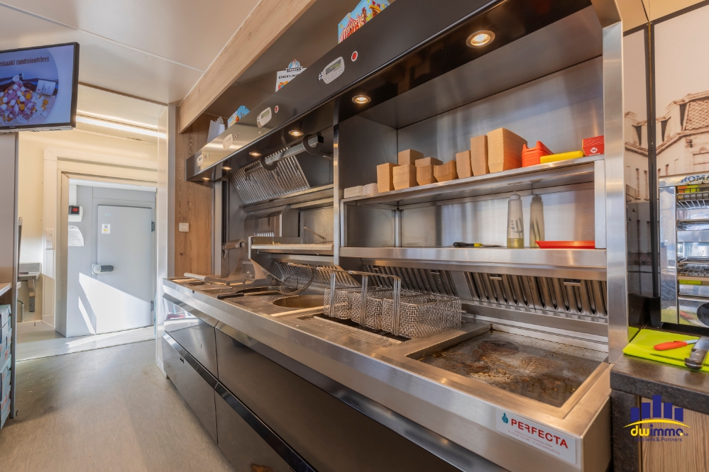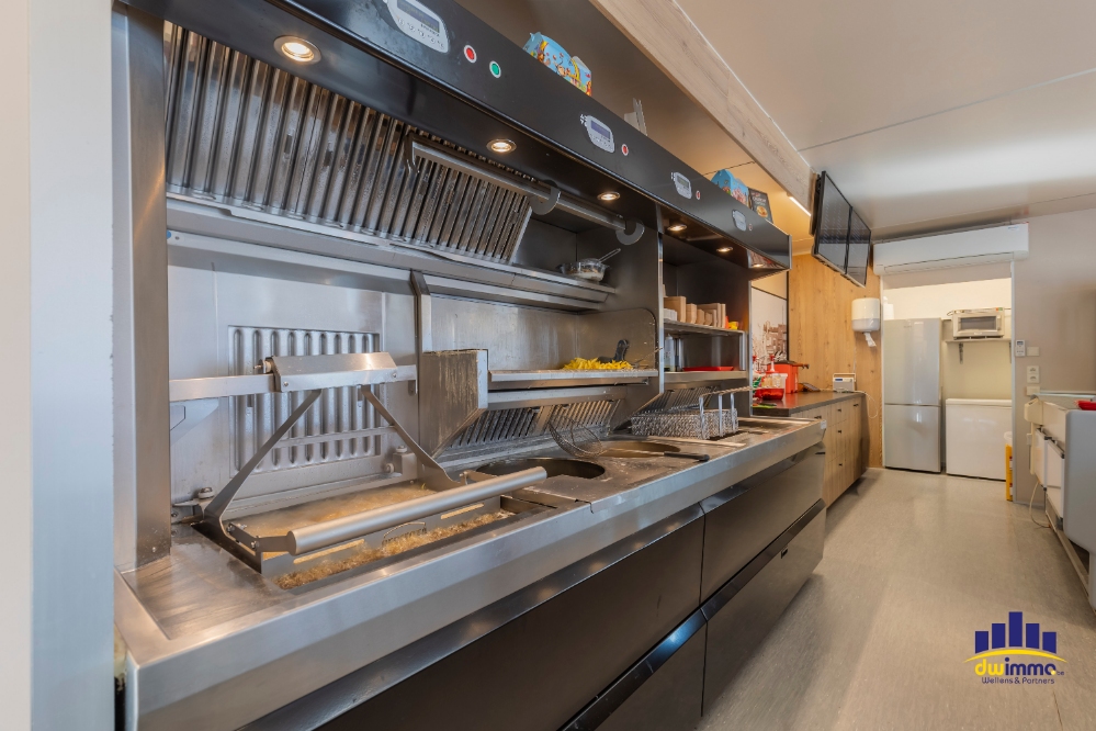 De zaak is volledig ingericht met recente en goed onderhouden toestellen, waaronder: Koelcel, airco, koeltoog, diverse koelingen en diepvriezers, friteuse Perfecta (2022) 10 kg voorbak + 2 potten + vleespot + bakplaat, TV-schermen en diverse andere professionele toestellen