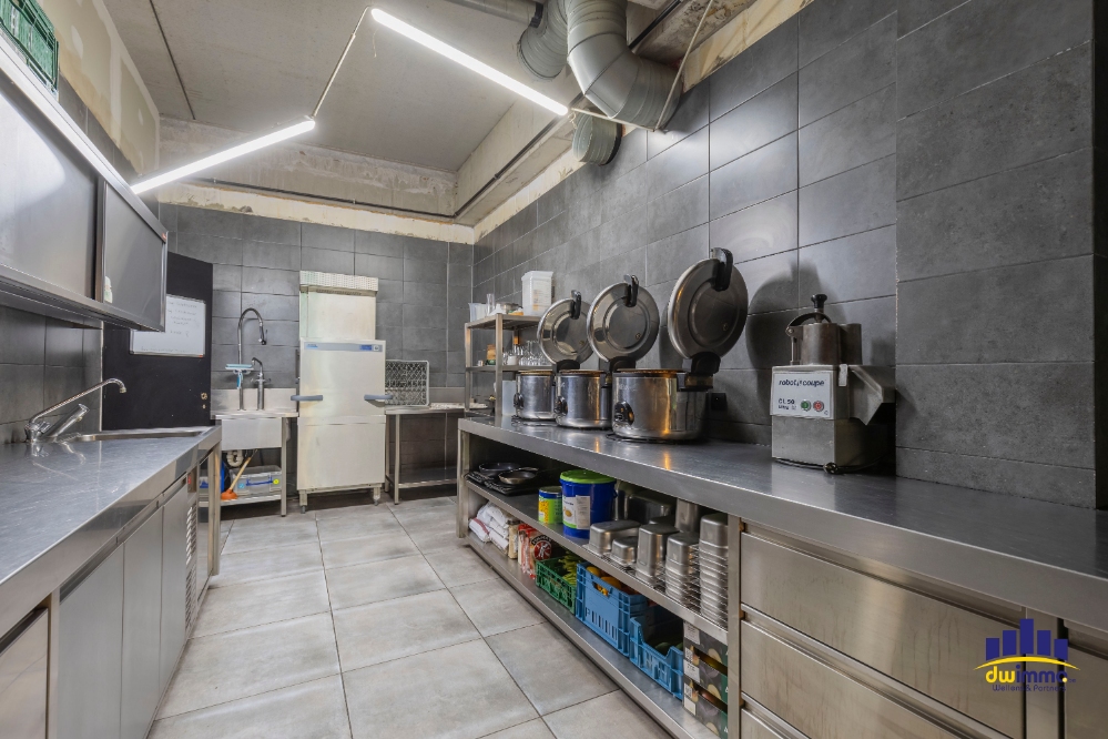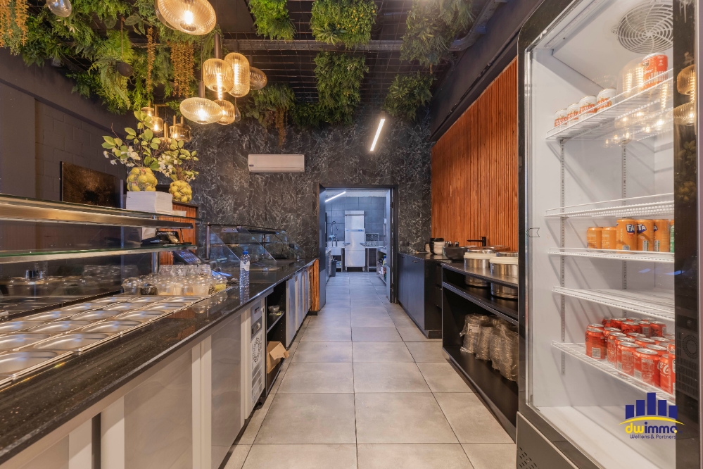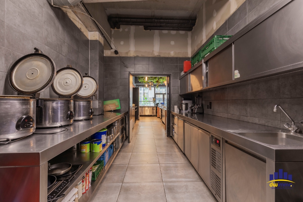 - Volledig ingerichte keuken & zaak: meerdere koeltogen, Winterhalter vaatafwas, drankenkoeling, airconditioning, camera-installatie, …