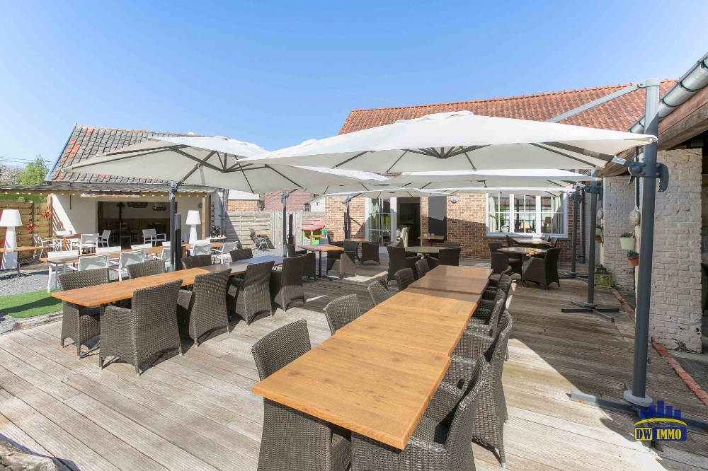 Brasserie restaurant in de Vlaamse Ardennen gelegen aan een drukke invalsweg met ruimte voor 60 personen binnen, terras in de tuin voor 50 personen, terras vooraan voor 20 personen. in In de tuin heb je een speeltuin.