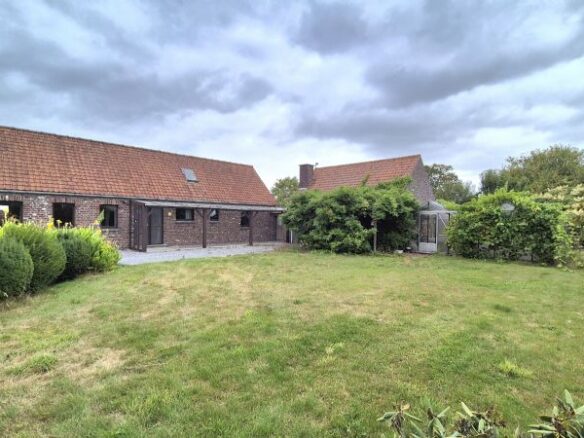 Prachtig gelegen alleenstaande woning met 3 slpks, garage, grote tuin in landelijke omgeving,… Opp 1680m². (Ref.16789)