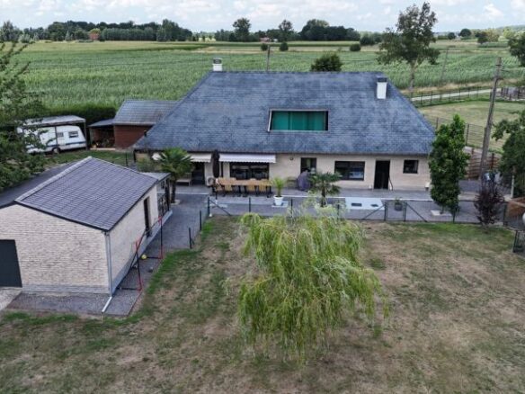 Landelijk gelegen hoekhuis met 3 slpkmrs, bijgebouw(126m²) met paardenboxen. Grondopp. 2435m². (Ref. 16744)