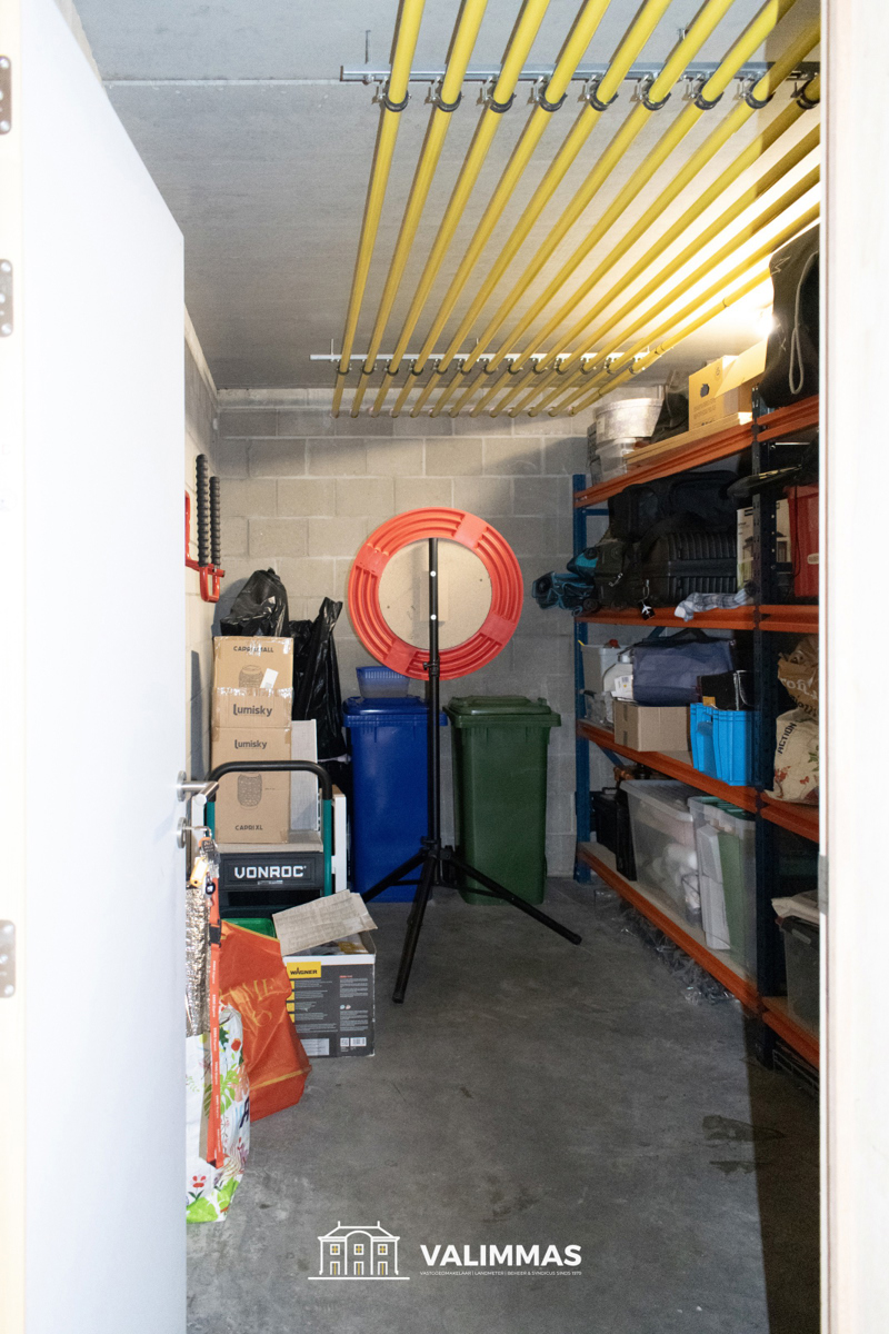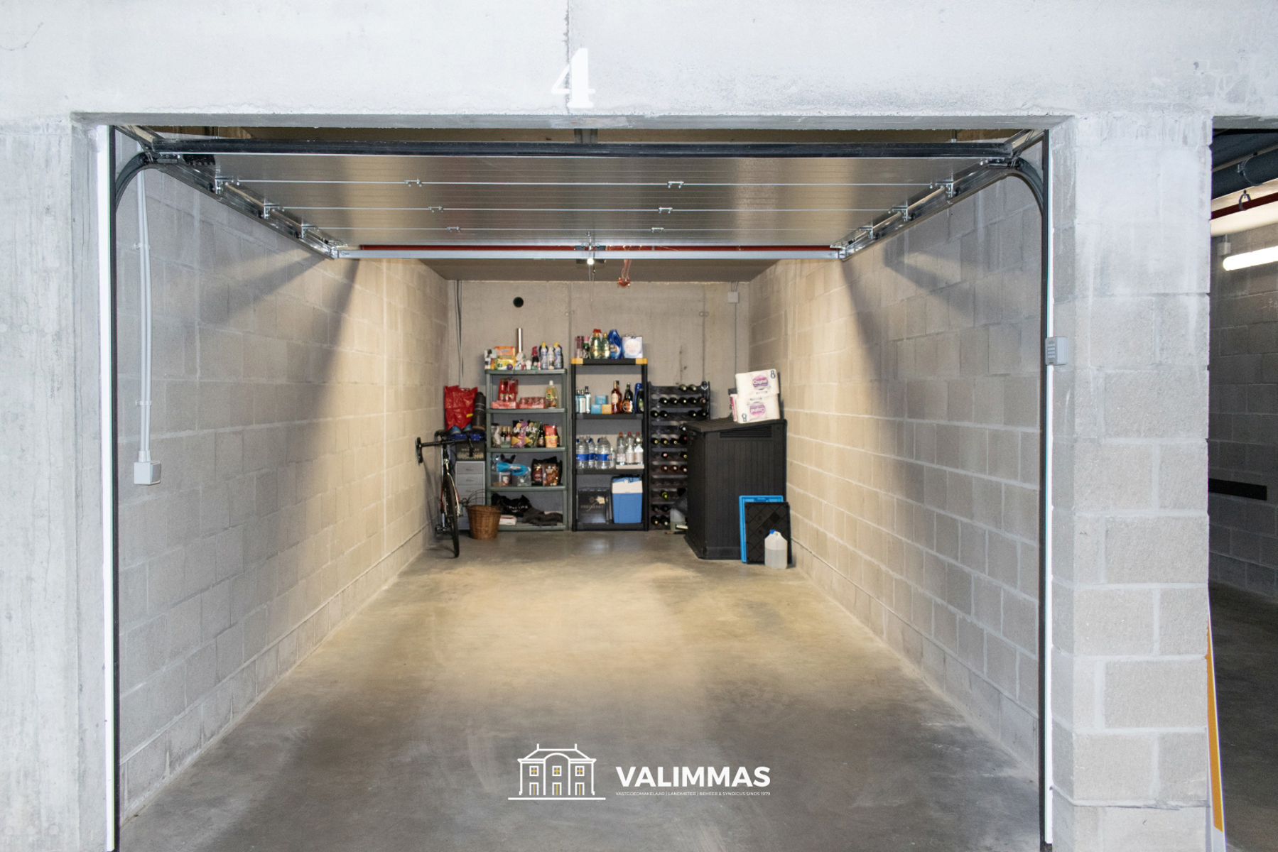 Een ruime garagebox (± 21m²) met geautomatiseerde sectionaalpoort en een grote kelderberging (± 10m²) zijn eveneens inbegrepen in de huurprijs.