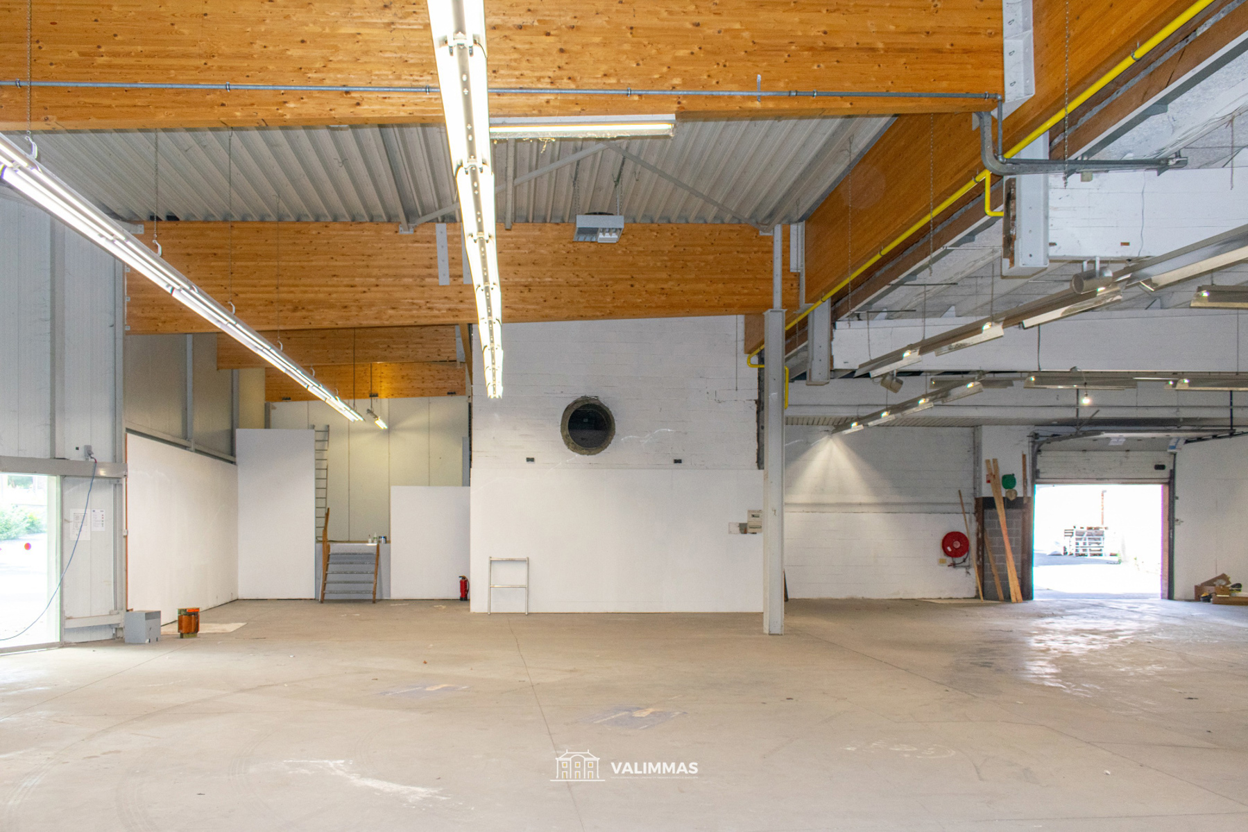 – handelsruimte / magazijn (± 1.900m²): gepolierde betonvloer – grotendeels TL-verlichting – warmeluchtblazers – brandhaspels – inkom: dubbele automatische schuifdeur – grote sectionaalpoort – nooduitgang