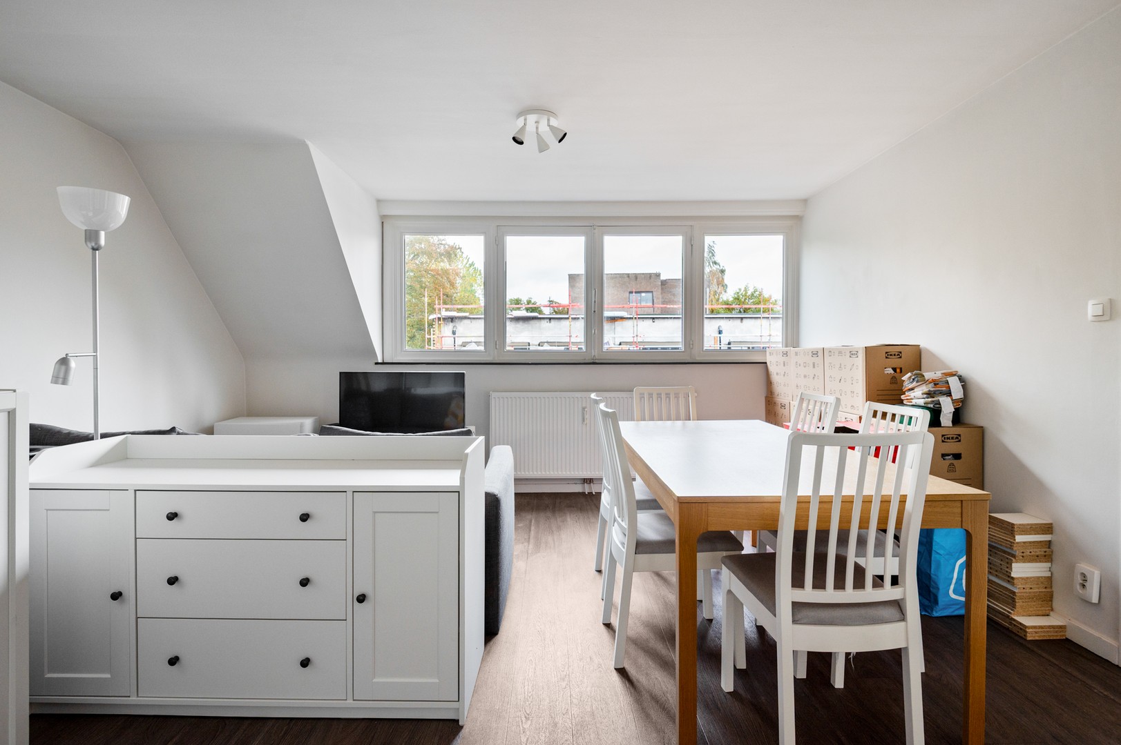 - Leefruimte: deze leefruimte straalt meteen gezelligheid uit. De leefkamer is licht en aangenaam, met voldoende plaats voor een zithoek en eettafel. De grote ramen zorgen voor een zonnige sfeer en een aangenaam gevoel van ruimte. Een ideale plek om na een drukke dag tot rust te komen in alle comfort.