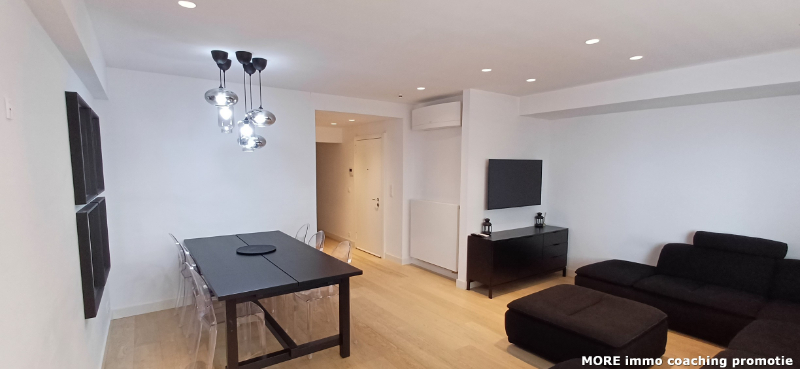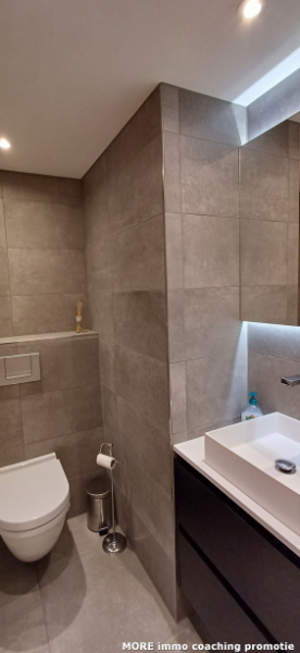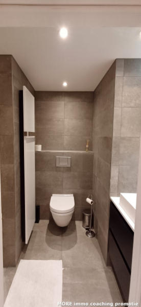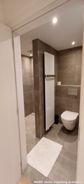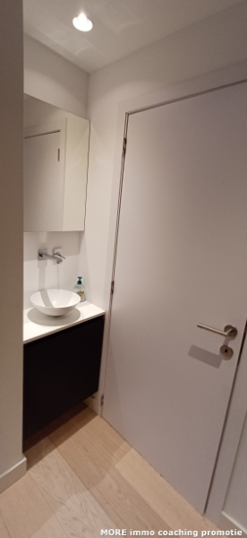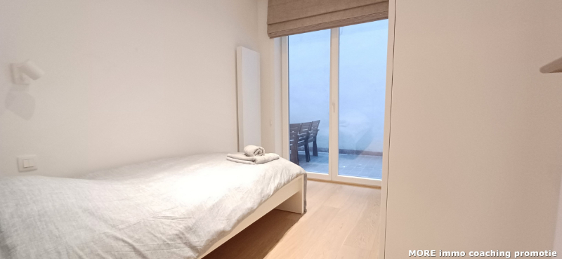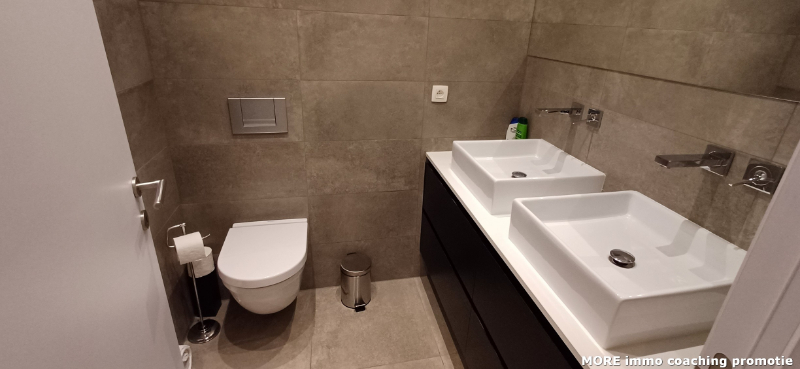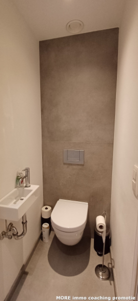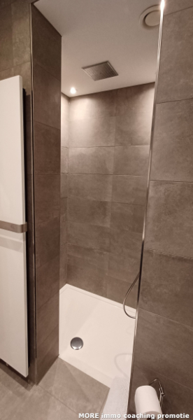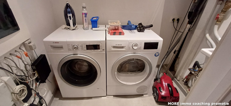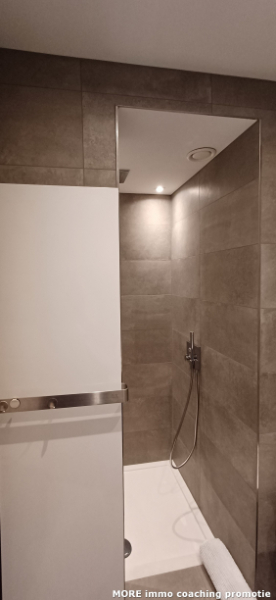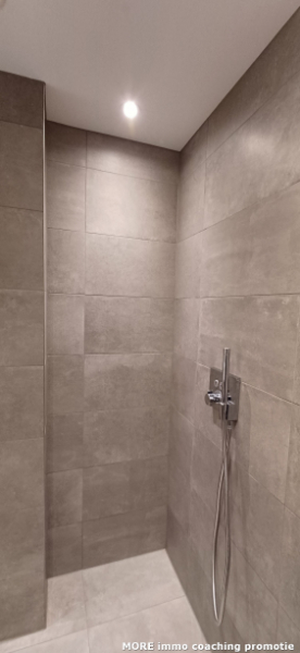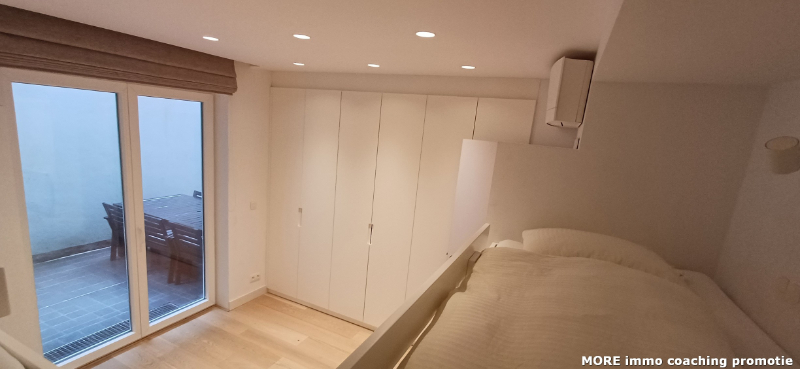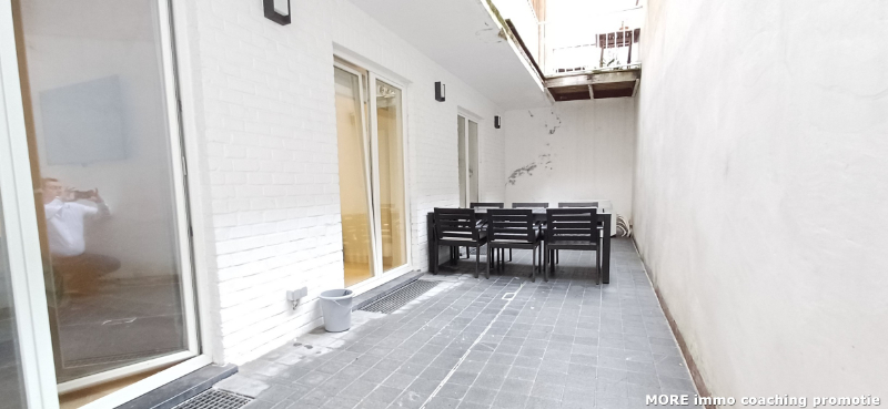 Ruim terras achteraan. Grote privatieve kelderruimte (-1). Gemeenschappelijke fietsenberging. Forfait gemeenschappelijke kosten: €50/maand.