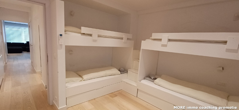 Tweede slaapkamer met inbouwkasten. Derde slaapkamer met stapelbedden-op-maat en inbouwkasten. Afzonderlijke douchekamer met inloopdouche.