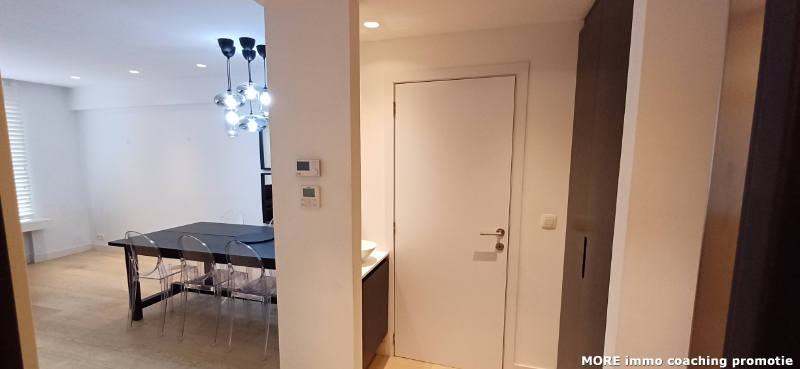 Indeling: Inkom met vestiaire en gastentoilet. Ruime woonkamer bestaande uit een salon en eetkamer. Volledig ingerichte keuken voorzien van Miele toestellen.