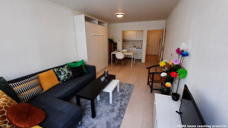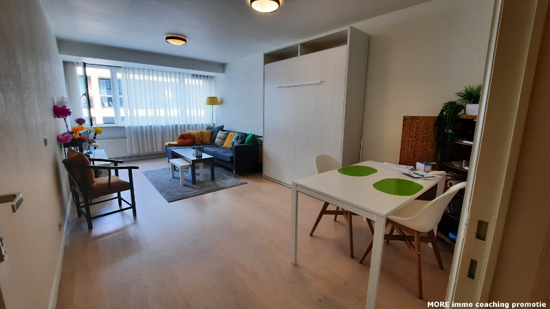Deze gezellige vakantiestudio bevindt zich op een boogscheut van de Zeedijk en het strand. De studio omvat een inkomhal met vestiaire, een ruime leefruimte, een open keuken en een badkamer met inloopdouche. In het gebouw is eveneens een privatieve kelder, een gemeenschappelijk afvallokaal en een gemeenschappelijke fietsenberging aanwezig. Deze studio is te huur als tweede verblijf. €40/maand forfait gemeenschappelijke lasten. ER WORDT BINNENKORT EEN BEZOEKDAG GEORGANISEERD.