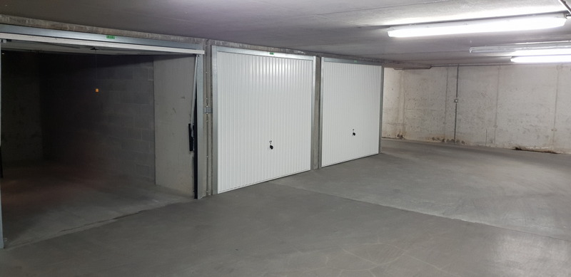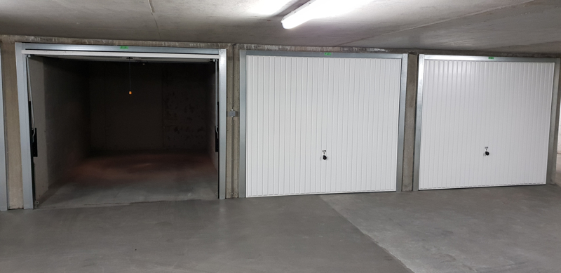 Garagebox met elektrische algemene en elektrische individuele toegangspoort in Knokke-centrum, zeer goed gelegen omgeving Dumortierlaan.