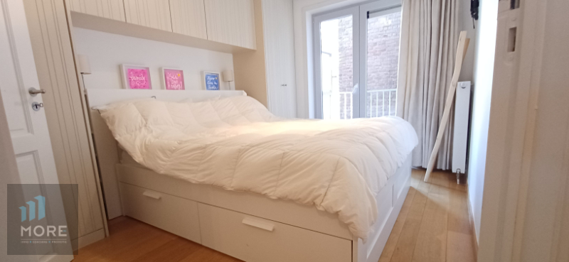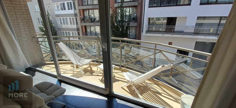 Stijlvol 2-slaapkamerappartement gelegen tussen de Kustlaan en de Dumortierlaan, hartje Knokke. Indeling: woonkamer, balkon aan de straatzijde, ingerichte keuken, nachthal met berging en afzonderlijk toilet, tweeslaapkamers – uitgevend op een balkonnetje aan de achterzijde – met elk hun ensuite douchekamer of badkamer.