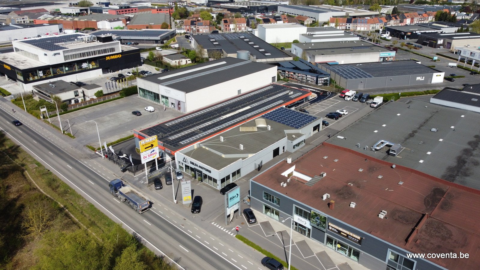 Showroom met voorliggende parking langs invalsweg te Kortrijk