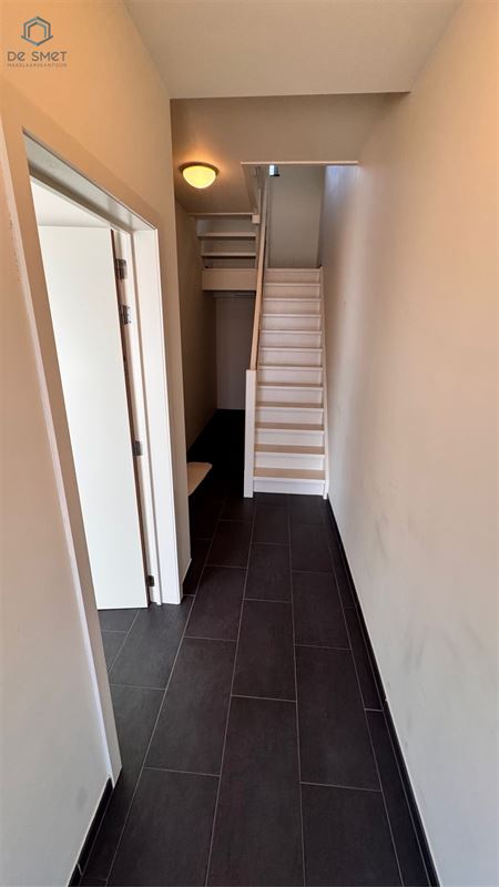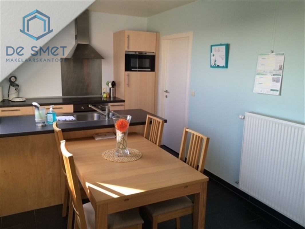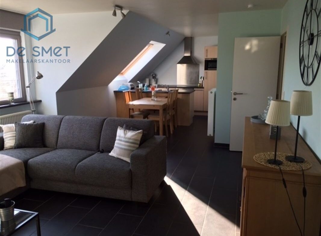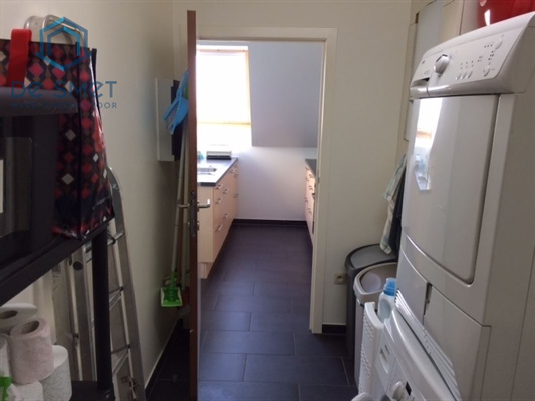 Dit modern appartement, gelegen op de bovenste verdieping van het pand, en bereikbaar via een afzonderlijke inkomhal(geen lift), omvat een zeer ruime living, een leuke goed uitgeruste open keuken(frigo, vaatwasser, microgolf, warmeluchtoven) en een berging.