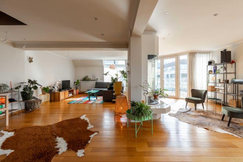 Eerste niveau: Bij binnenkomst wordt u verwelkomd in een stijlvolle inkomhal die leidt naar een lichtrijke, ruime leefruimte met diverse zithoeken en ontspanningsmogelijkheden. Het aansluitende, zuidoostelijk georiënteerde terras nodigt uit tot ontspannen in de zon. De moderne keuken is voorzien van een volledig uitgeruste ontbijthoek. Verder bevindt zich op dit niveau een gastentoilet.