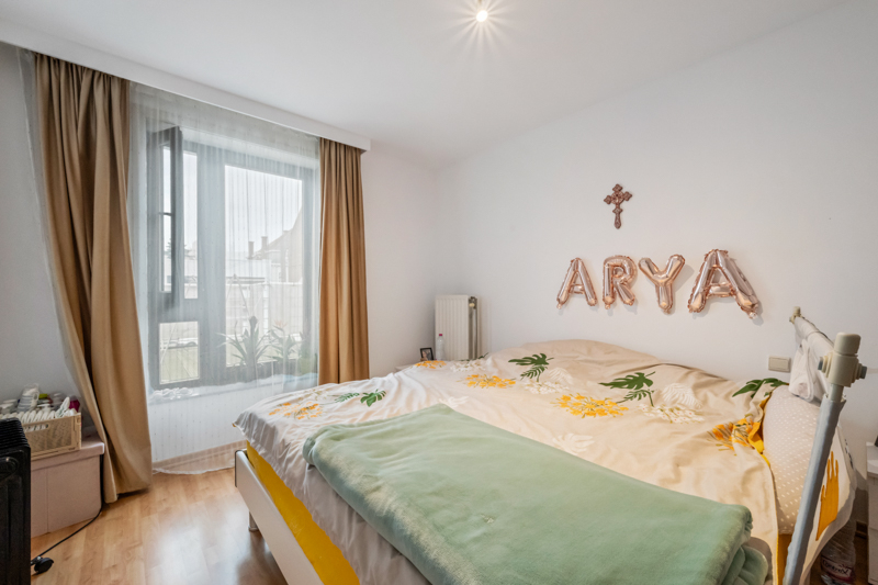 Bij binnenkomst leidt de inkomhal je naar de ruime en lichte leefruimte, waar grote ramen zorgen voor een aangename sfeer. De moderne, volledig uitgeruste keuken is perfect voor wie graag kookt en heeft een aansluitende praktische berging.