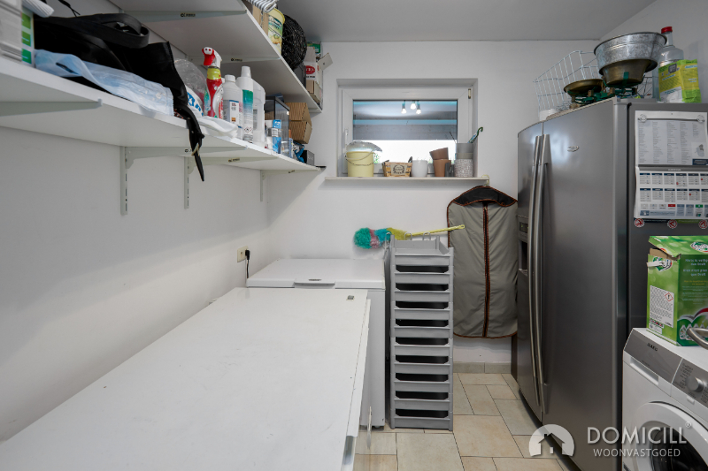 Op het gelijkvloers word je verwelkomd door een lichtrijke inkomhal met toilet. De ruime, zonnige woonkamer en de grote, volledig uitgeruste leefkeuken bieden uitzicht op het terras. Daarnaast vind je een praktische wasplaats (met mogelijkheid tot extra douche) en een extra ruimte die dienst kan doen als bureau of slaapkamer. De ruime garage biedt plaats voor 2 wagens, en buiten zijn er tal van parkeerplaatsen plus een carport voor minstens 3 extra wagens. De gezellige tuin is onderhoudsvriendelijk en beschikt over een royaal zonneterras – ideaal om te genieten van het buitenleven.