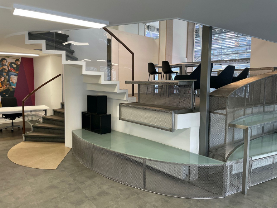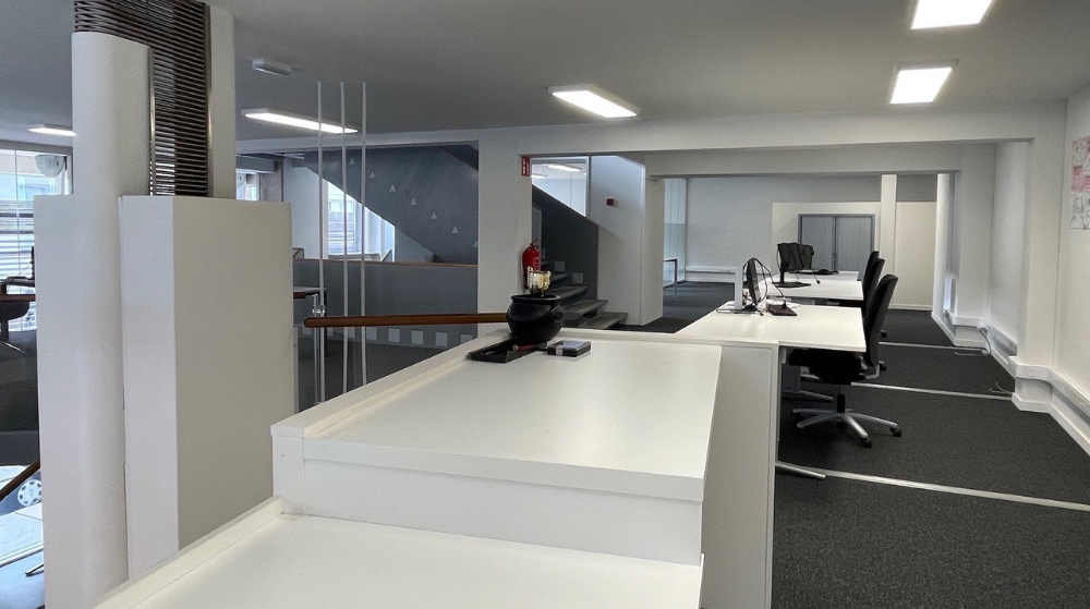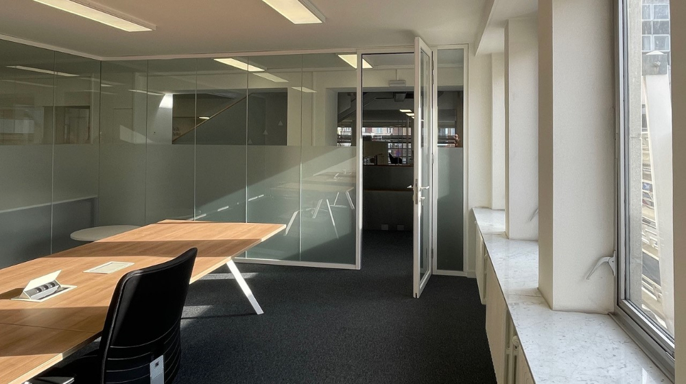 De kantoorruimtes bevinden zich op het gelijkvloers, eerste & tweede verdieping. De verdiepingen zijn instapklaar en bevatten diverse kantoorruimtes, vergaderzalen en een eetruimte met kitchenette. Het gebouw beschikt over grote raampartijen, wat zorgt voor een zeer lichtrijke en aangename werkomgeving. Op de eerste en tweede verdieping zijn bovendien afgesloten cubicles aanwezig. Daarbovenop zijn er nog twee extra verdiepingen, waaronder een woongedeelte, waardoor het geheel een bijzonder veelzijdig en flexibel inzetbaar karakter krijgt.