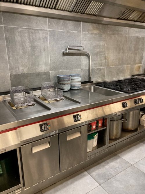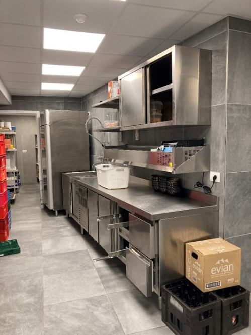 Volledig ingerichte industriële keuken.