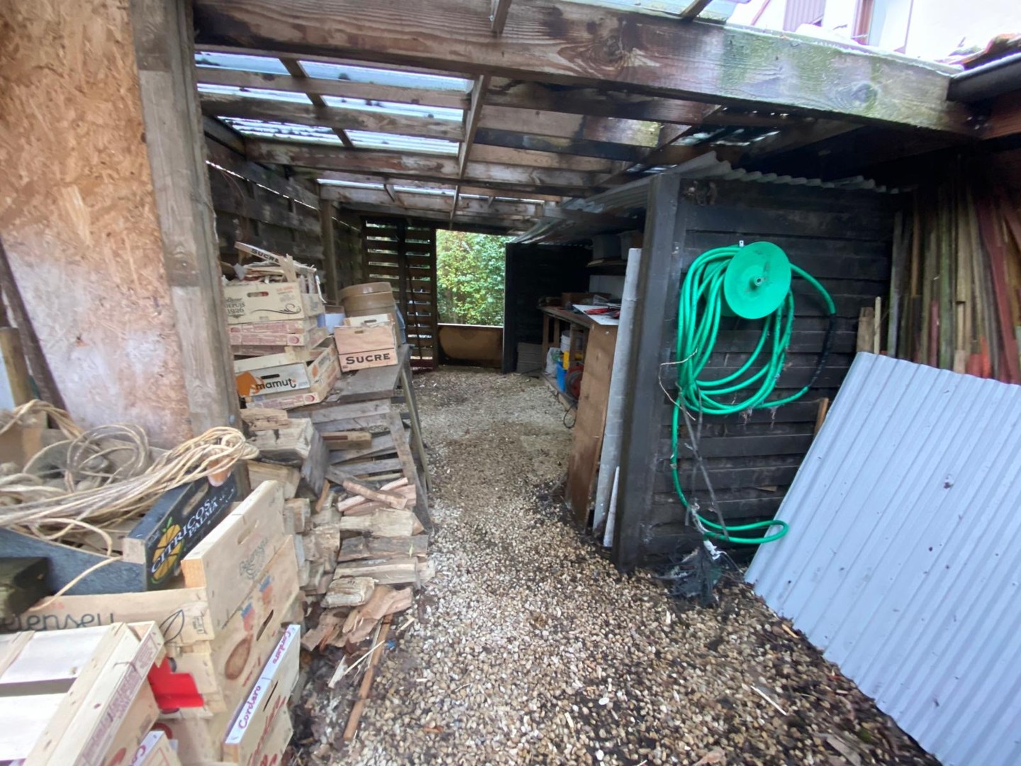 * 2 naastliggende carports voor houtstapeling en materiaal