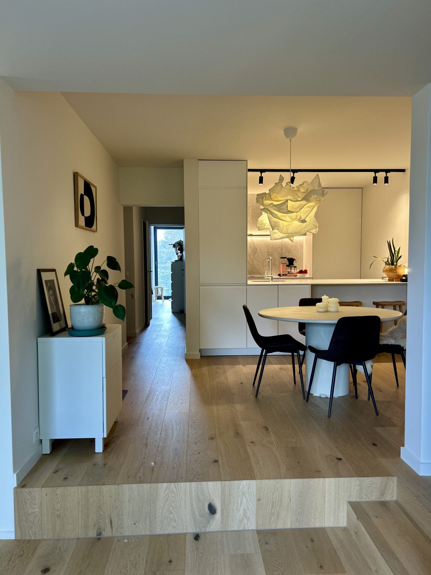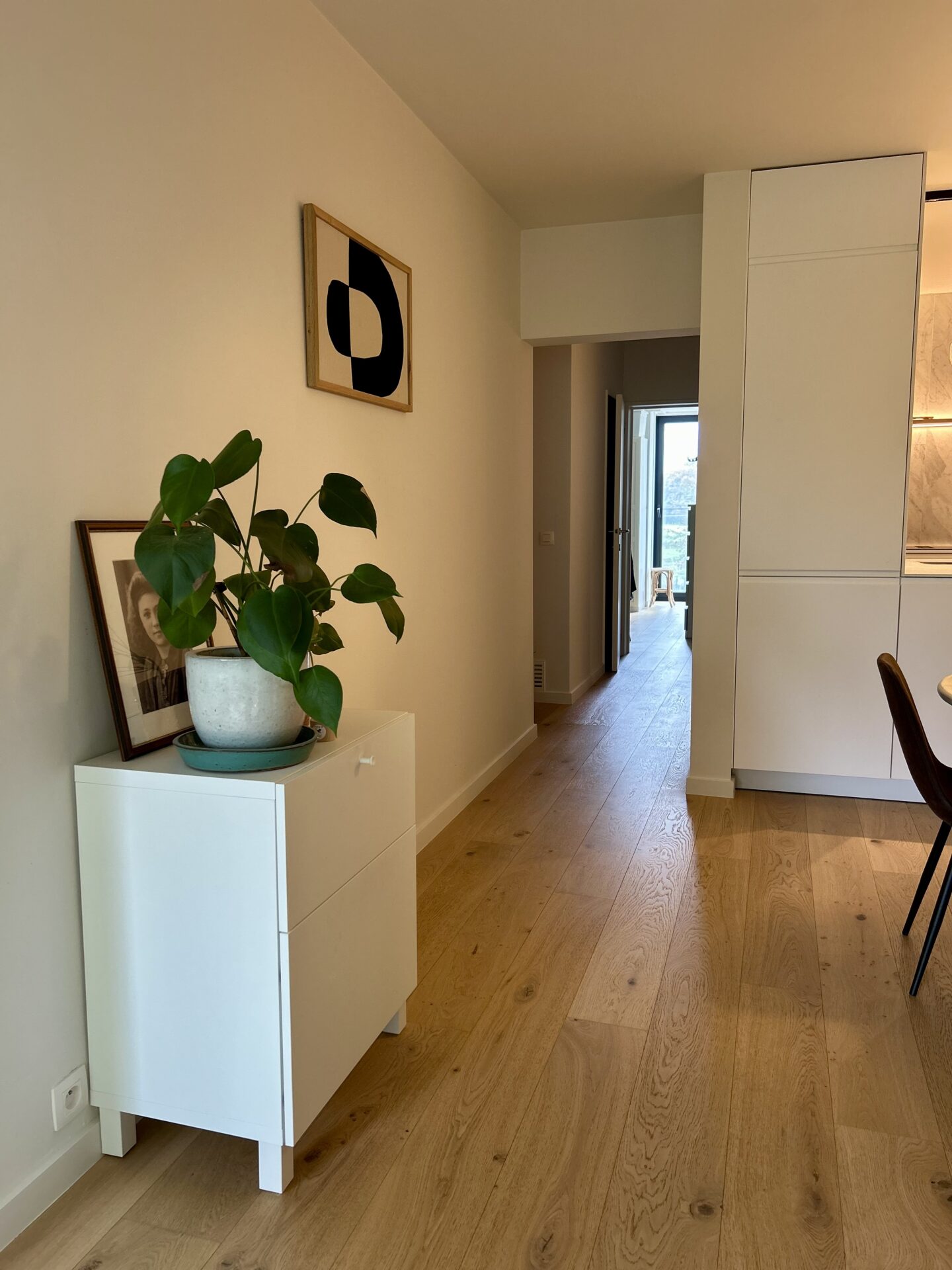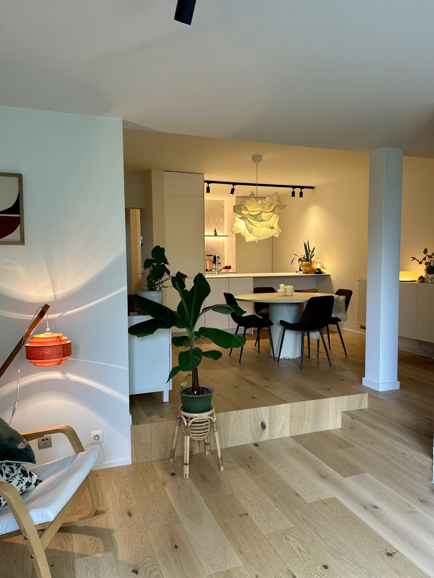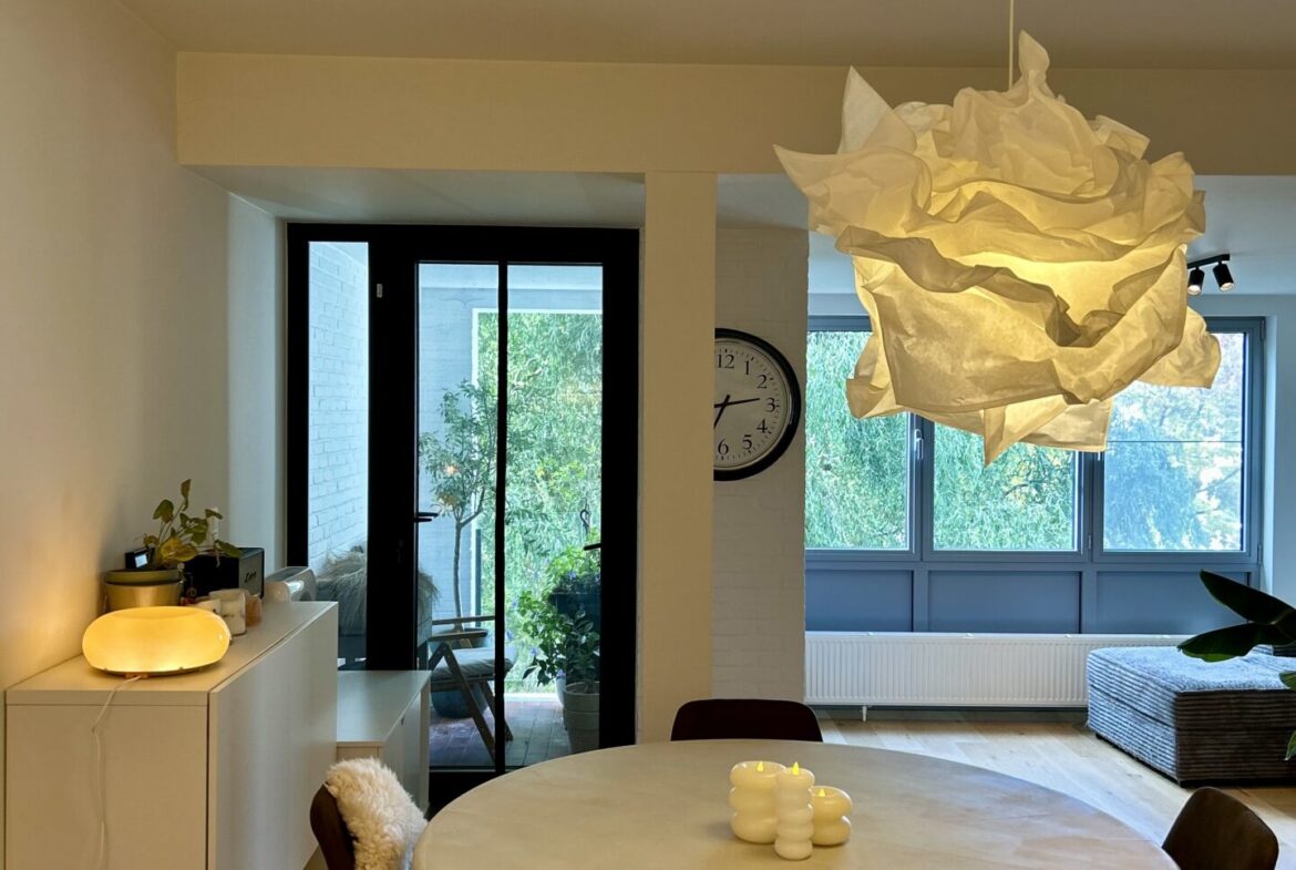 Het appartement werd volledig gerenoveerd in 2022 en combineert modern comfort met een warme, natuurlijke uitstraling. De open keuken vormt het hart van de woning en sluit naadloos aan bij de lichtrijke leefruimte met zitput – een sfeervolle plek om te ontspannen of gasten te ontvangen.