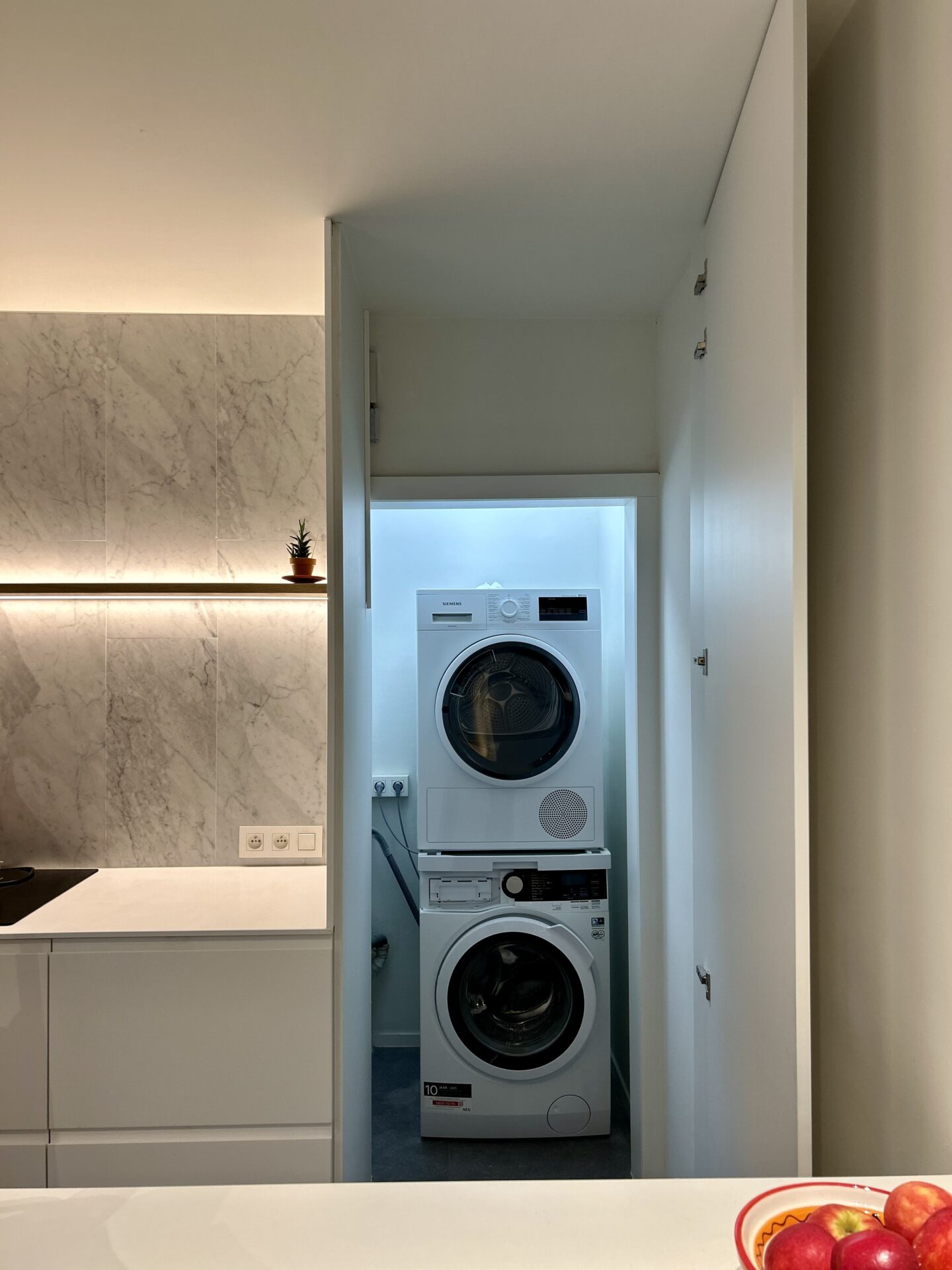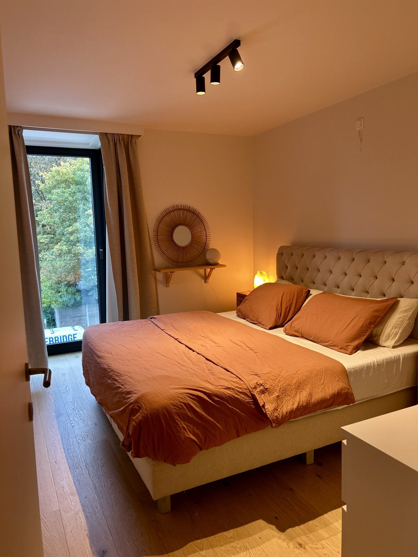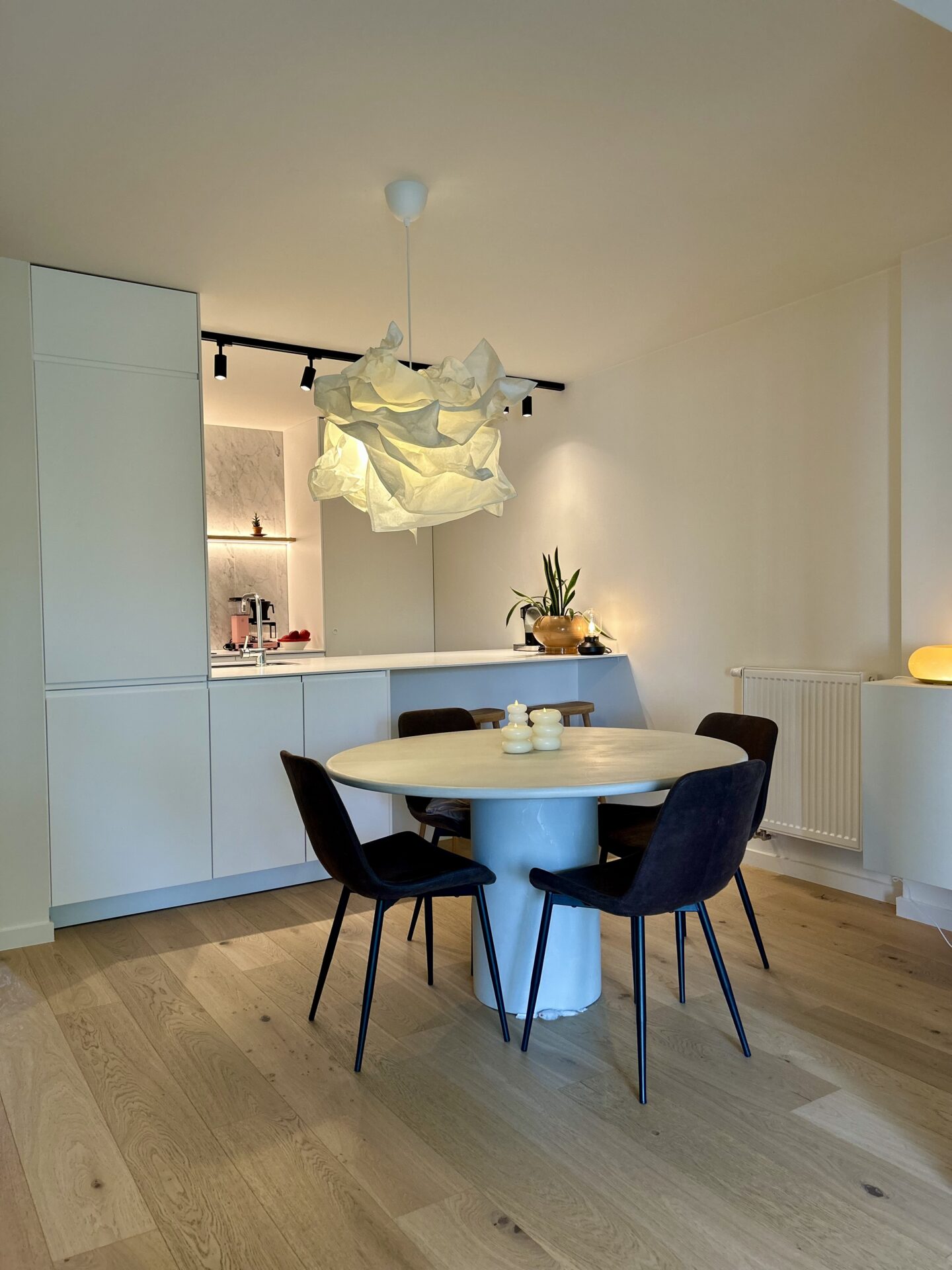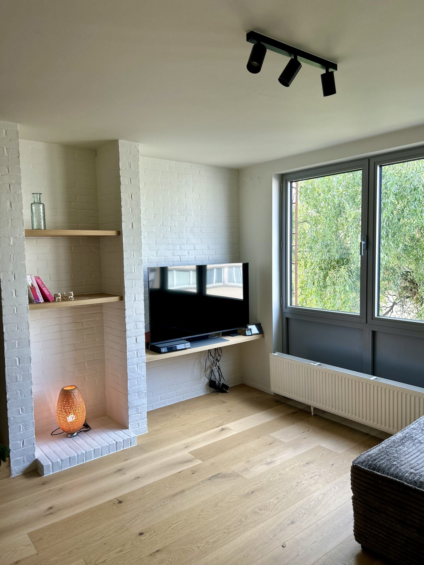 Het appartement werd volledig gerenoveerd in 2022 en combineert modern comfort met een warme, natuurlijke uitstraling. De open keuken vormt het hart van de woning en sluit naadloos aan bij de lichtrijke leefruimte met zitput – een sfeervolle plek om te ontspannen of gasten te ontvangen.