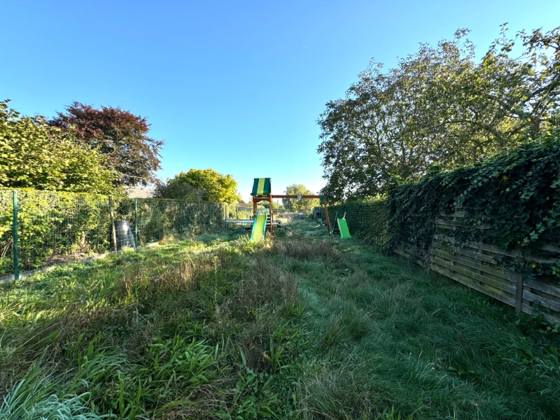 Hoekwoning met parking en oprit naast de woning en grote tuin voor 195.000 euro