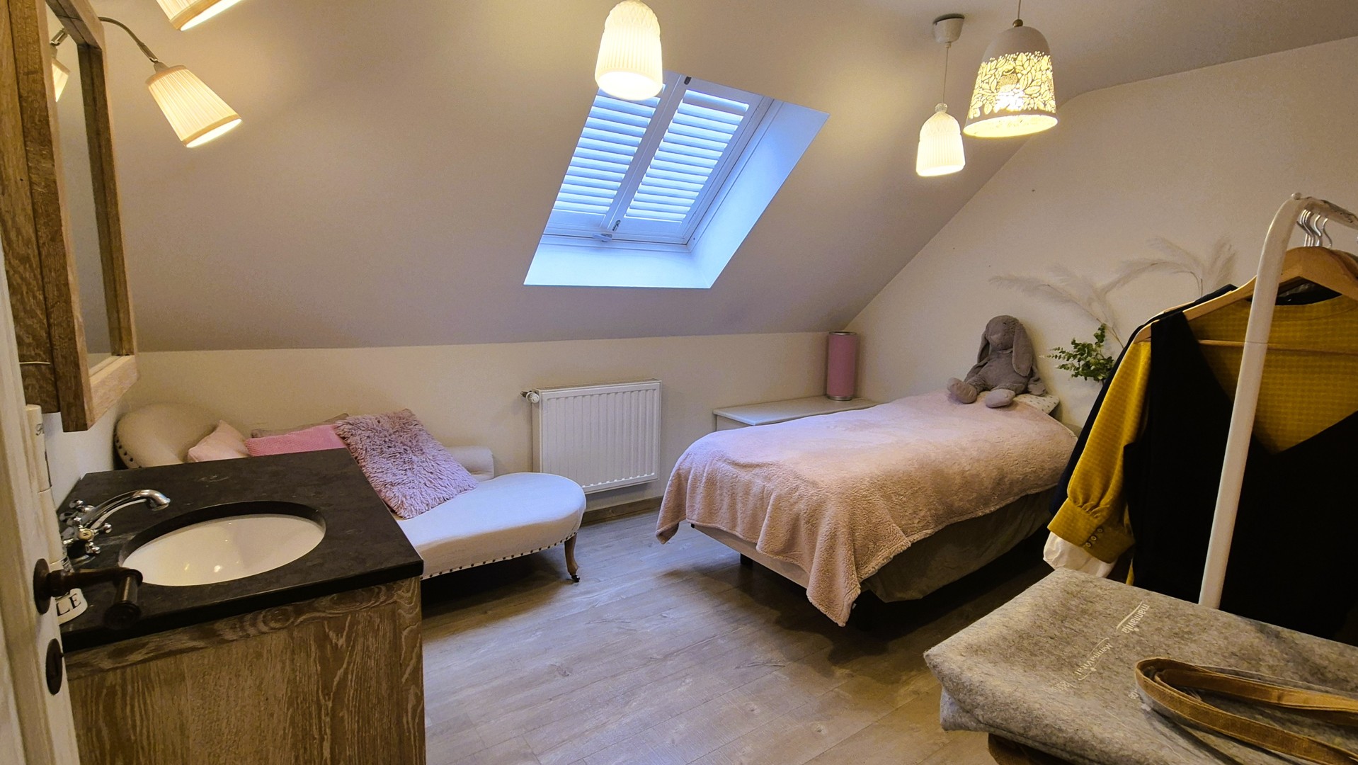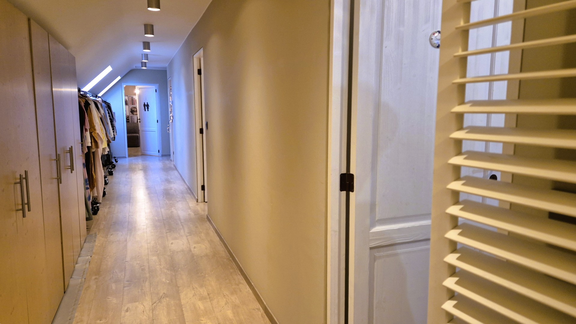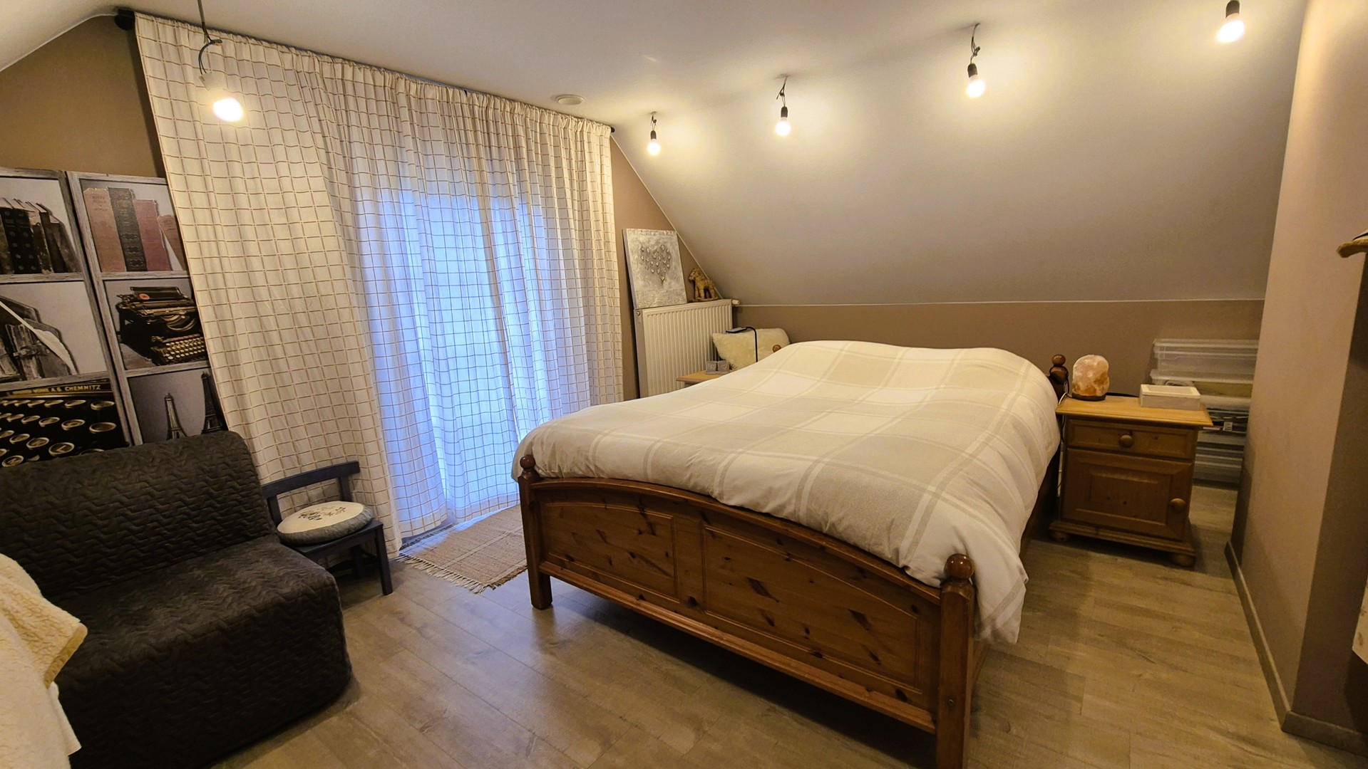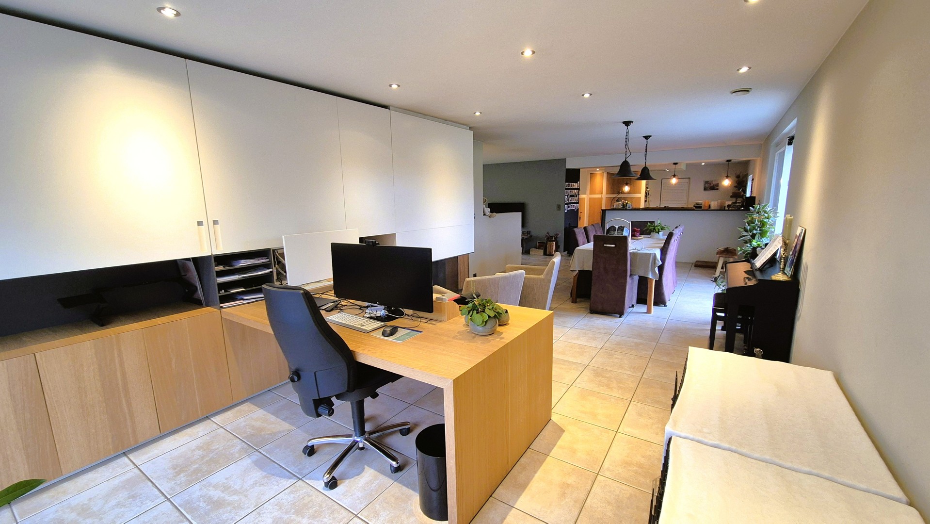De kangoeroewoning (nieuwbouw 2006) beschikt over een bruikbare vloeroppervlakte van 204m² en is ingericht met een slaapkamer, badkamer (met douche, lavabo en toilet), berging, ingerichte keuken, leefruimte, veranda, inpandige garage (recent werd poort vervangen door raam en 2 toegangsdeuren wat hier ook perfect als een extra apart bureau kan dienen).
