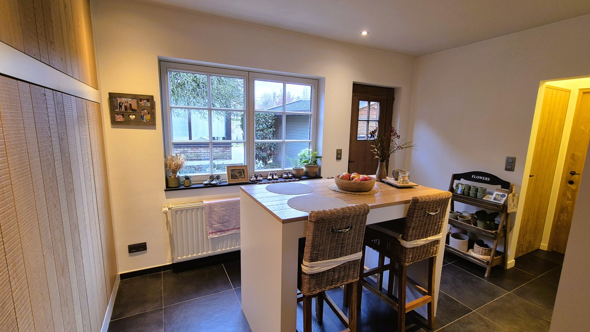 Hoekwoning met parking en oprit naast de woning en grote tuin voor 195.000 euro