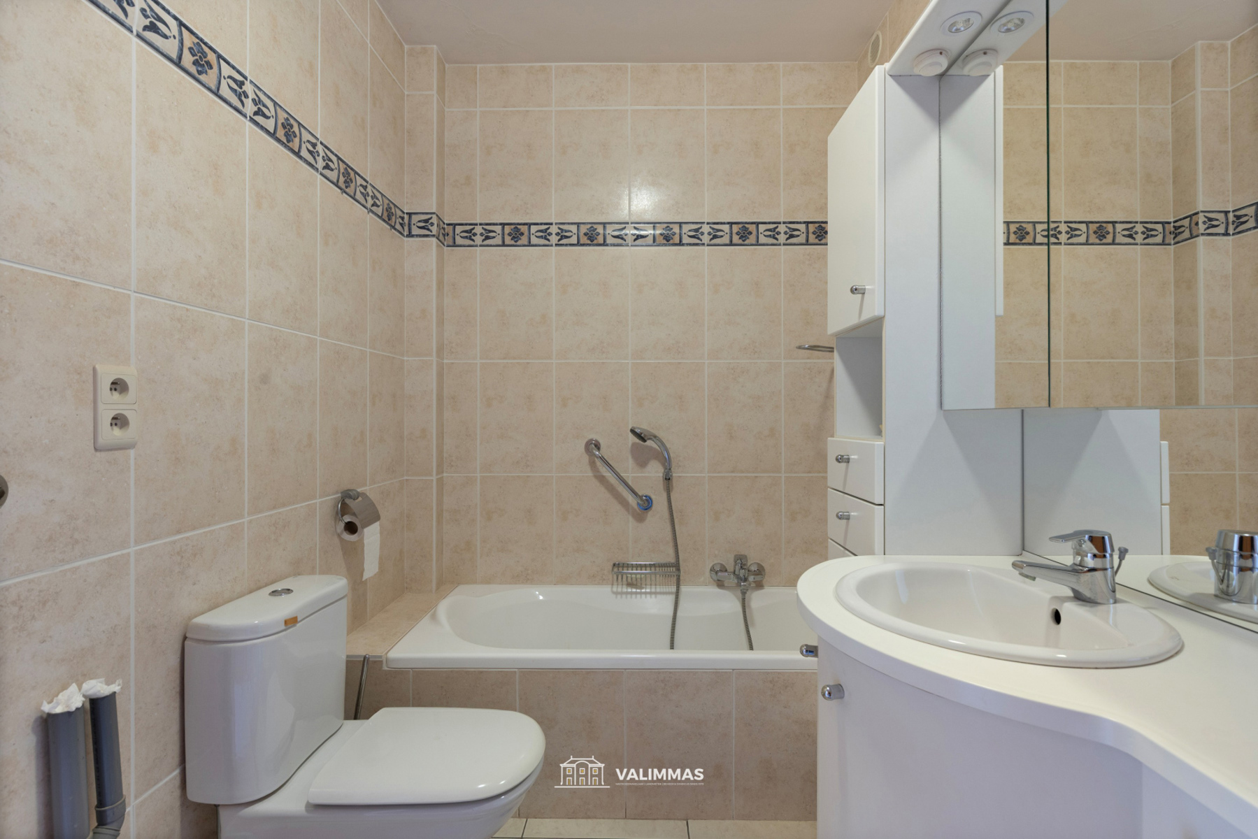 De eerste verdieping herbergt een overloop met lift, een living met open ingerichte keuken (airco), een wasplaats, een badkamer en een ruime slaapkamer.