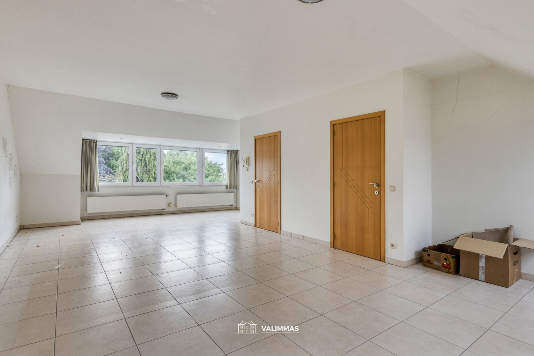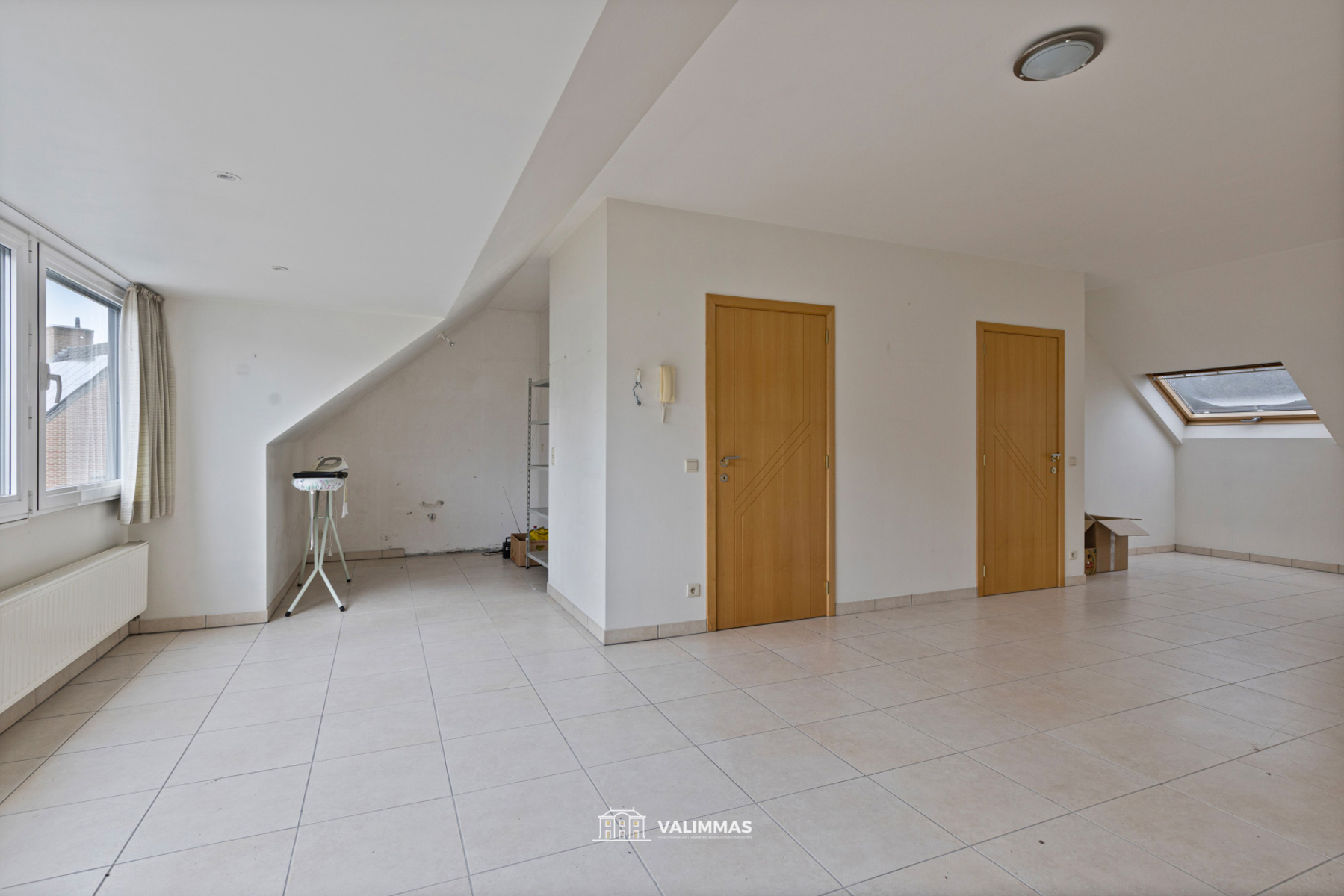 De dakverdieping omvat een overloop met lift, een zeer ruime kamer (± 50m²) en een (desgewenst nog verder in te richten) badkamer.