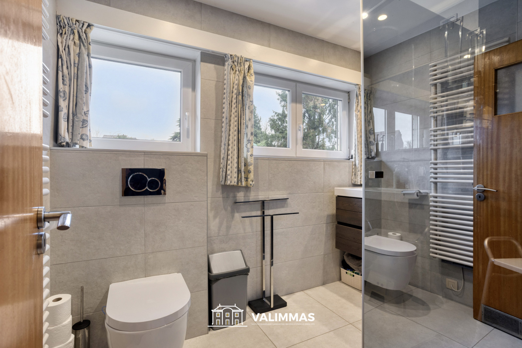 Inclusief 12 zonnepanelen (3,6 kWp) = gratis elektriciteit én gemiddeld een 3-tal groenestroomcertificaten/jaar x € 350 = € 1.050 (nog tot juni 2030). Warmtepomp Daikin (airco koelen en verwarmen). Energiezuinige woning, EPC label B !