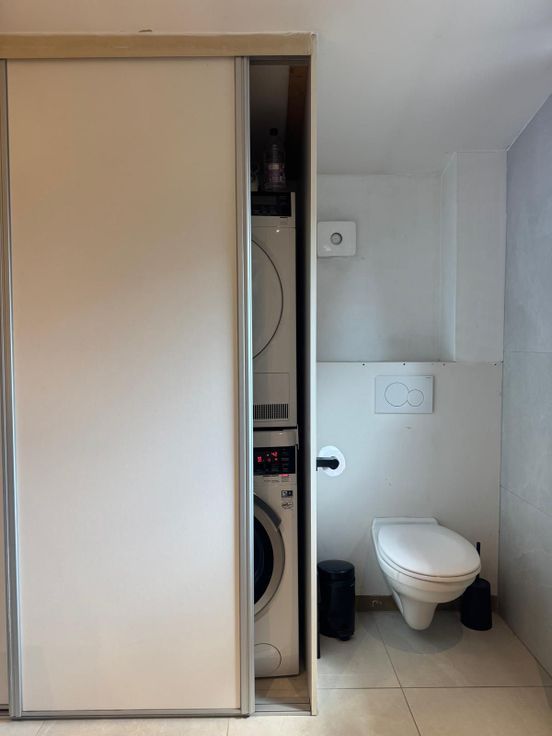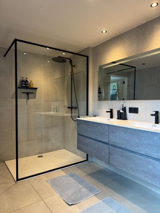 • Badkamer met inloopdouche, dubbel lavabo en toilet