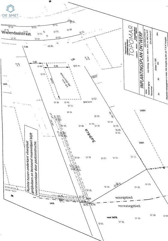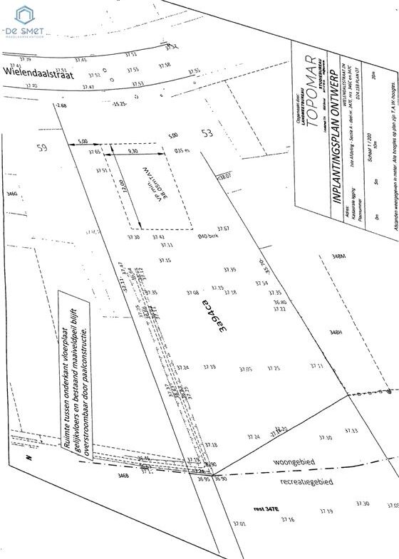 Afmetingen woning: Stedenbouwkundig attest goedgekeurd voor een open bebouwing van 12 m x 9,30 m.