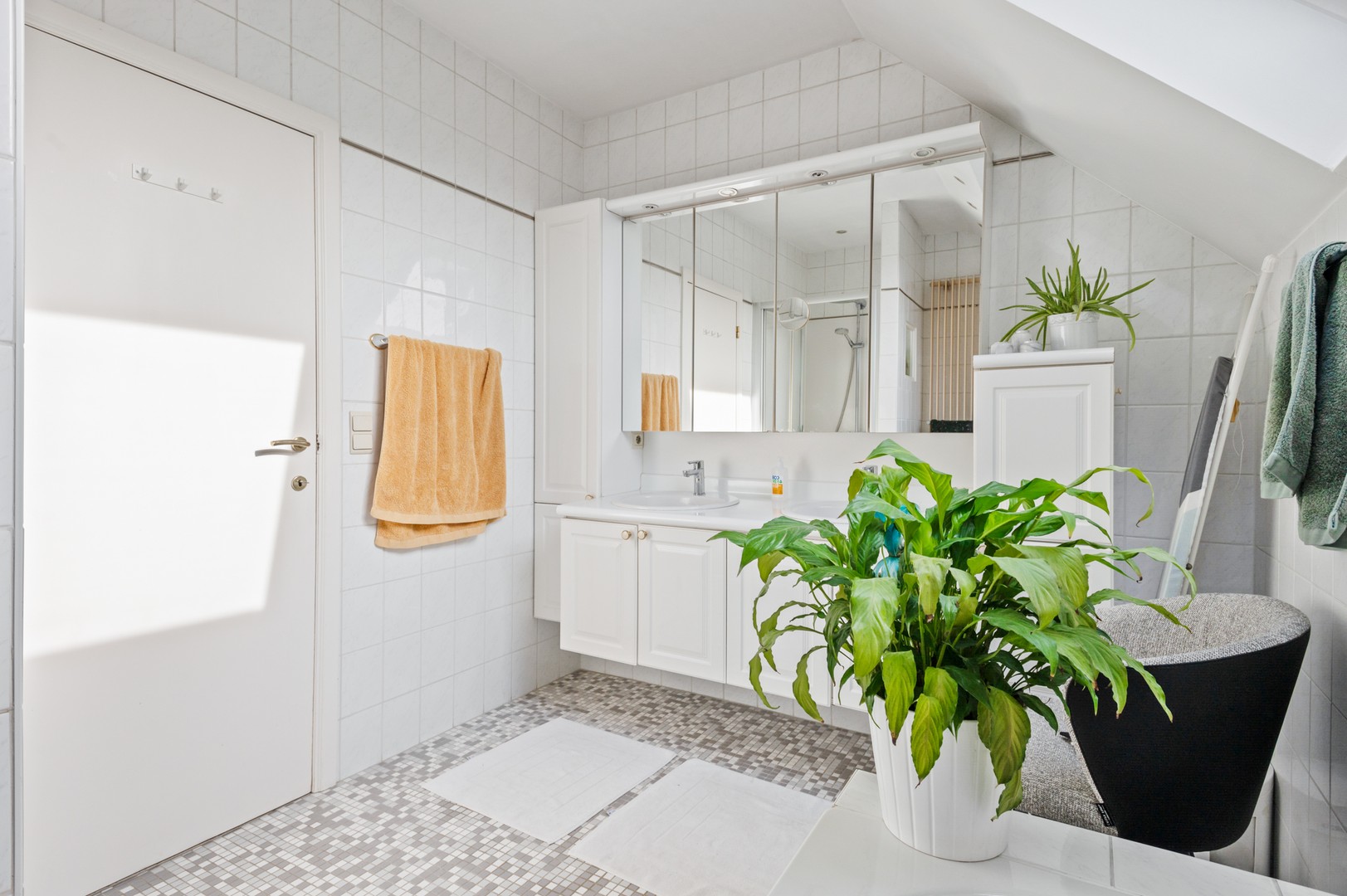 - Badkamer: de badkamer is voorzien van zowel een ligbad als een douche. Verder heeft u nog een wandmeubel met dubbele wastafel en een handdoekradiator. Bovendien is de badkamer volledig betegeld en dus makkelijk om schoon te maken.