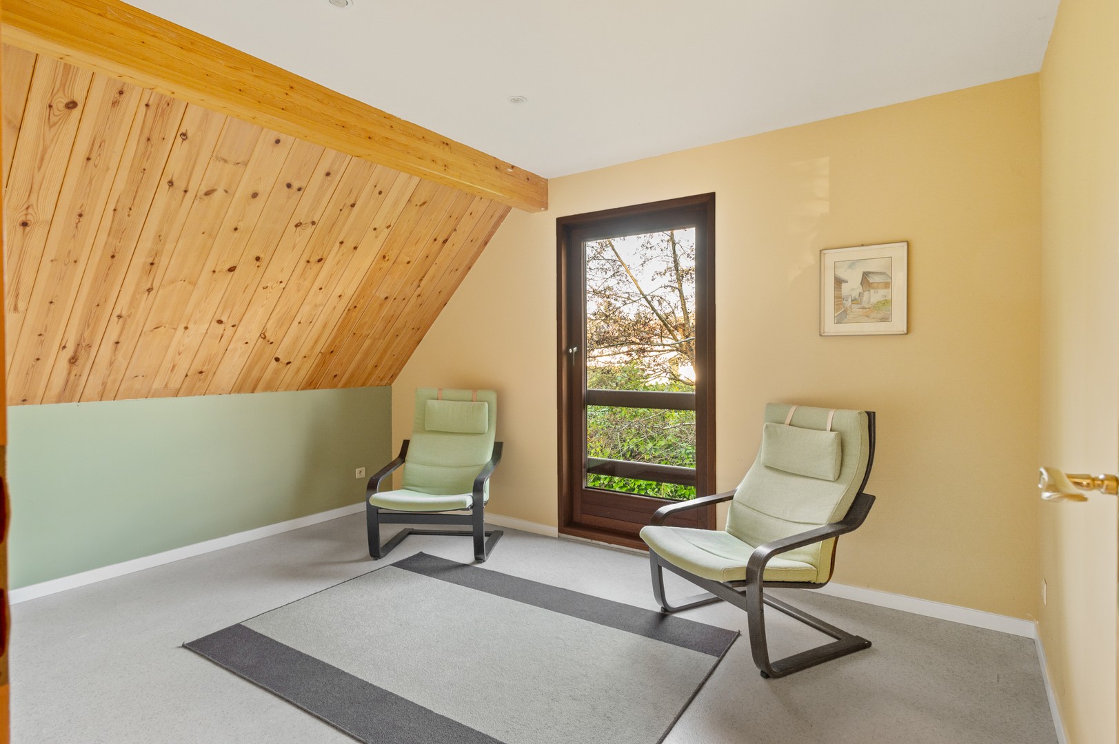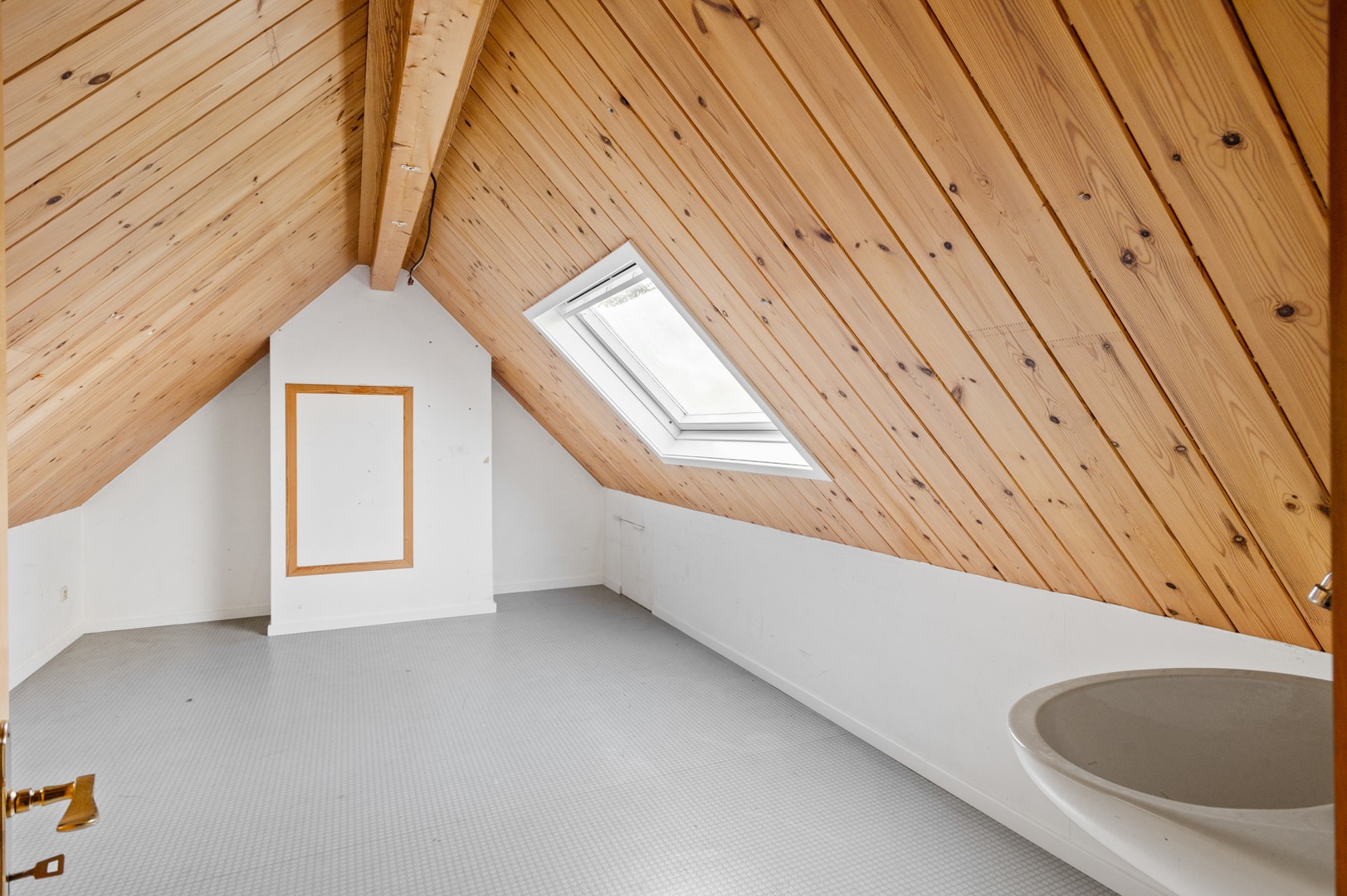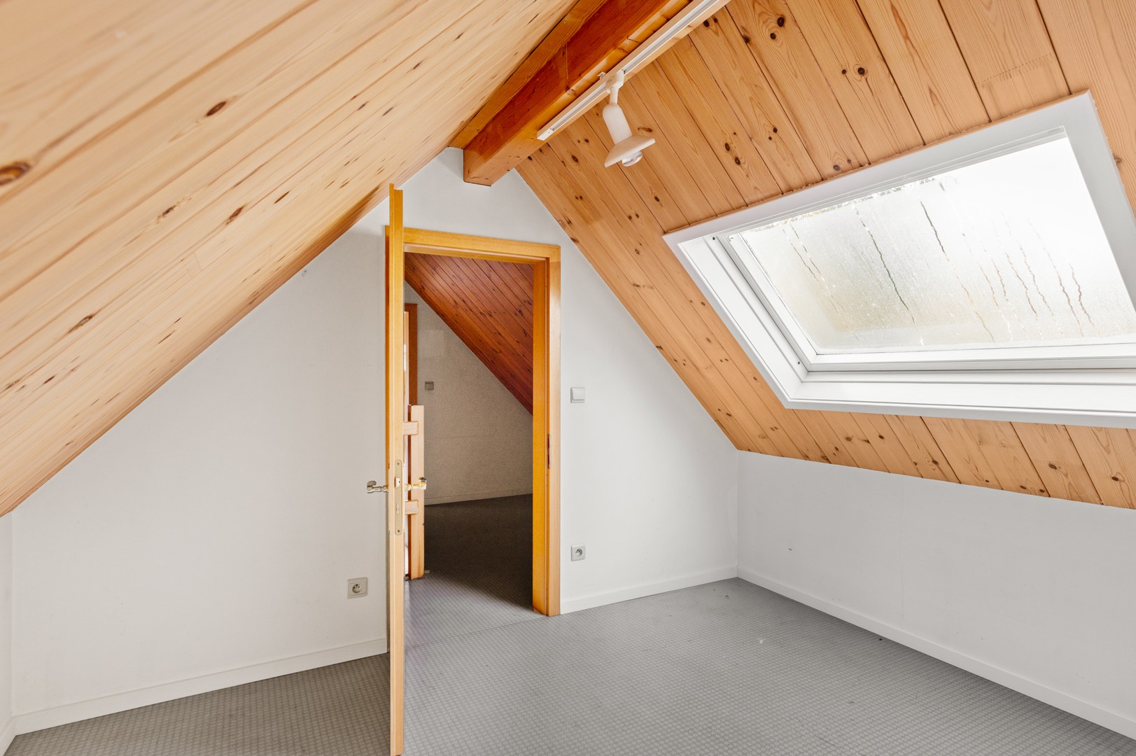 - 2 slaapkamer: Op zolder vindt u nog twee identieke slaapkamers terug van ca. 10 en 10 m² – die genieten van veel natuurlijk licht. Één kamer heeft een extra wastafel. Ideaal voor een hobbykamer.