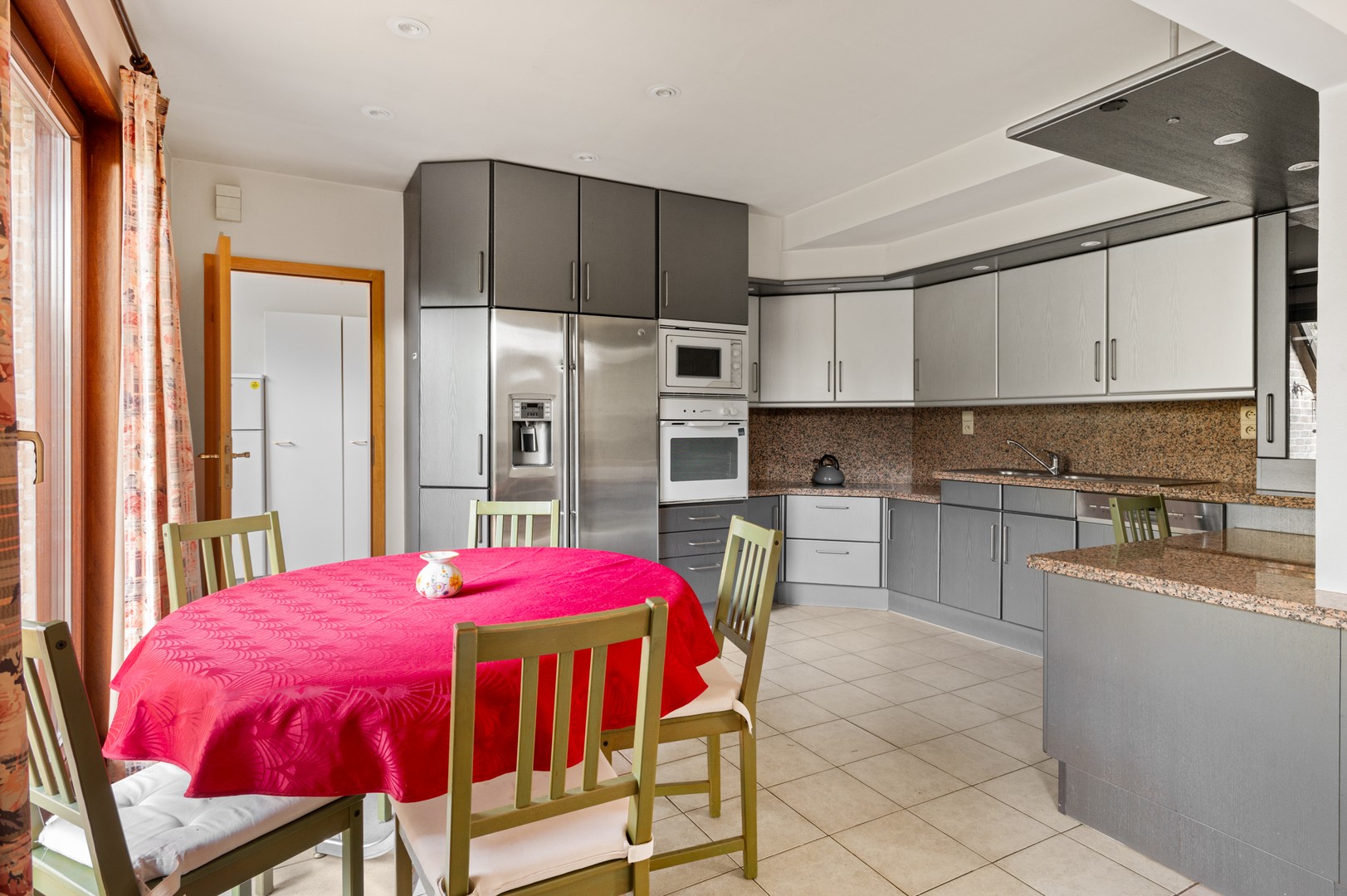 - Open keuken: de keuken vormt één geheel met de leefruimte. Zo profiteert de kok des huizes mee van het licht, de ruimte en de gezellige drukte in de woonkamer. De keuken heeft een inductiekooplaat met dampkap, oven, microgolfoven, vaatwasser en ijskast.