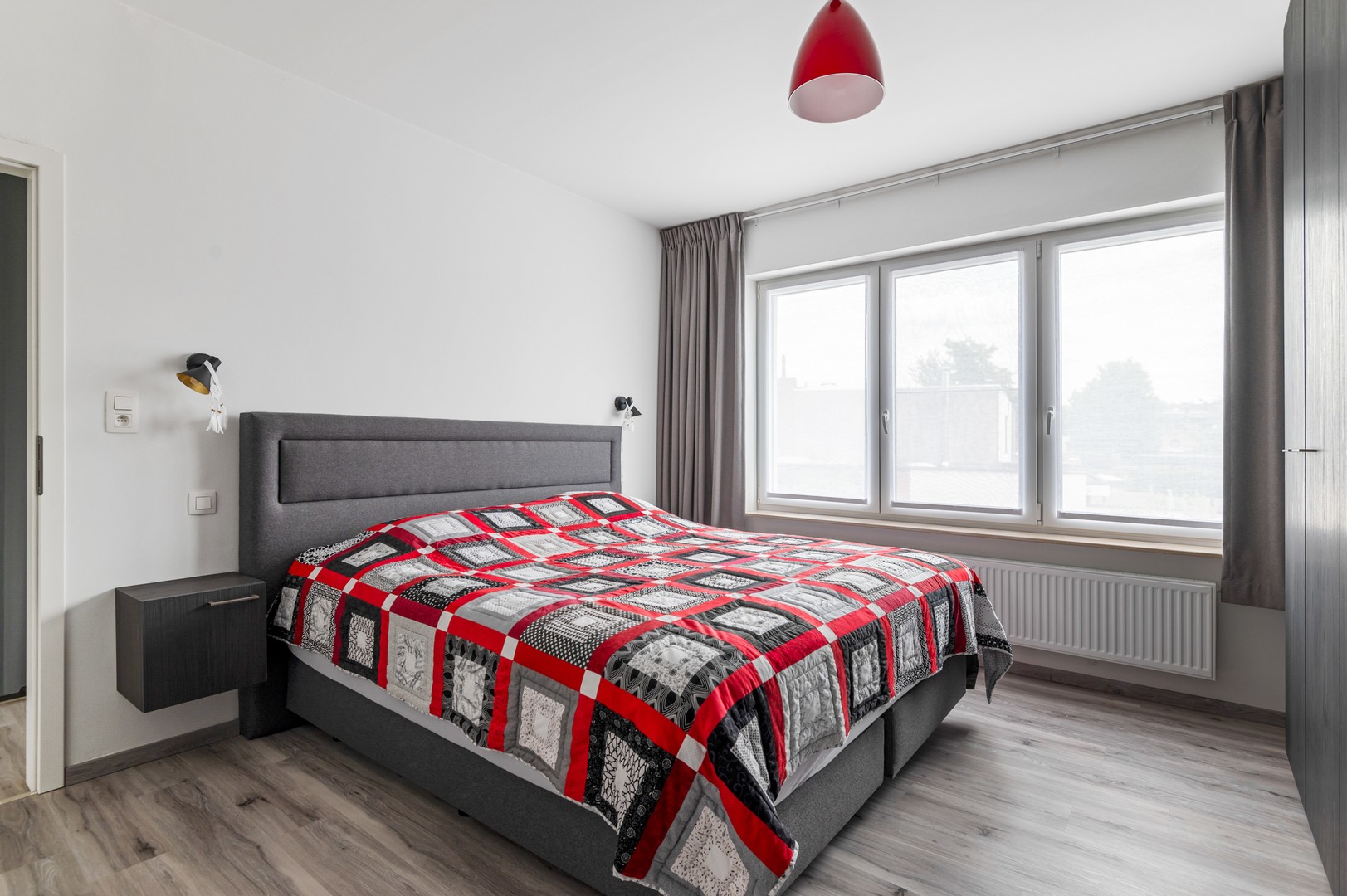 - 2 Slaapkamers: vanuit de nachthal heb je toegang tot de slaapkamers. Deze zijn ca 16.8m² en ca 16.5m² en hebben beiden veel lichtinval door de grote ramen. Ook is de grote slaapkamer voorzien van een ingebouwde maatkast. U wordt elke ochtend wakker met zicht op uw tuin of de groene straat in een rustige wijk – zo stapt u gegarandeerd met het juiste been uit bed.