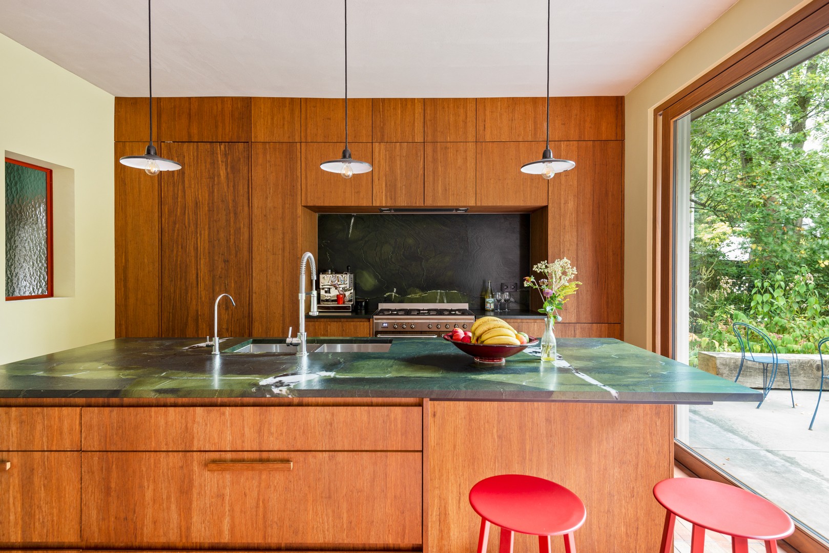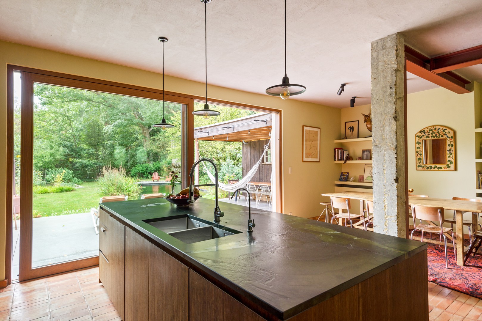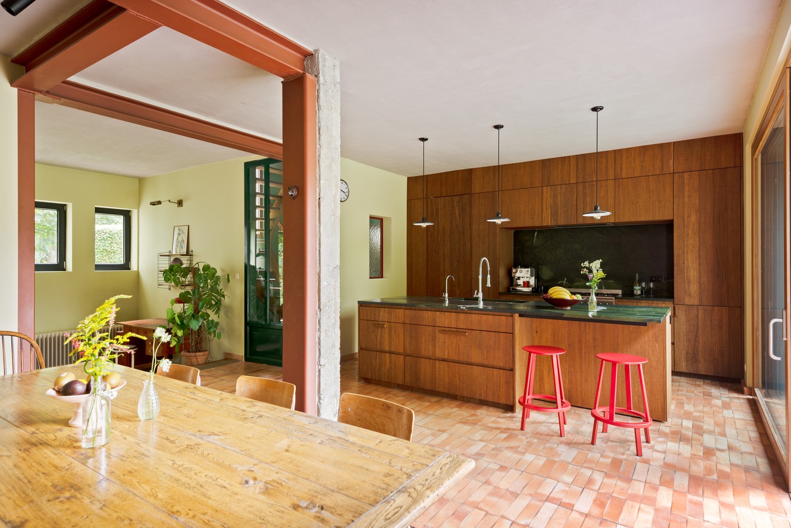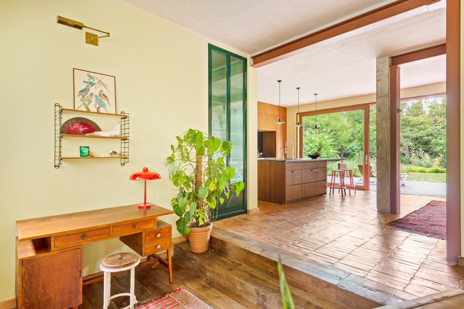 - Lichte leefruimte met open keuken: de benedenverdieping mag op heel wat oh’s en ah’s rekenen. Zoals voor de hele woning geldt hier: kwalitatief gerenoveerd, en charmant en praktisch ingericht. Op de vloer van de eetkamer en keuken ligt een prachtig natuursteen en via de kamerbrede en – hoge schuifraam krijgt u toegang tot de tuin. In de leefruimte staat nu de gezellige eettafel te blinken in het licht. Nog een absolute blikvanger op de benedenverdieping is de keuken met een combinatie de houten kasten en een prachtig keukenblad afkomstig uit Brazilië. De keuken heeft een oven, koelkast, diepvriezer, gaskookvuur en een afwasmachine. Ook vindt u nog een ruime opbergruimte die mee in de keuken werd geïntegreerd. Bovendien heeft u in de leefruimte een zithoek met een haard, parketvloer en groot glazen raam die het licht en het groen van buiten naar binnen doet stromen. In deze leefruimte werkt u met veel plezier elke dag thuis.