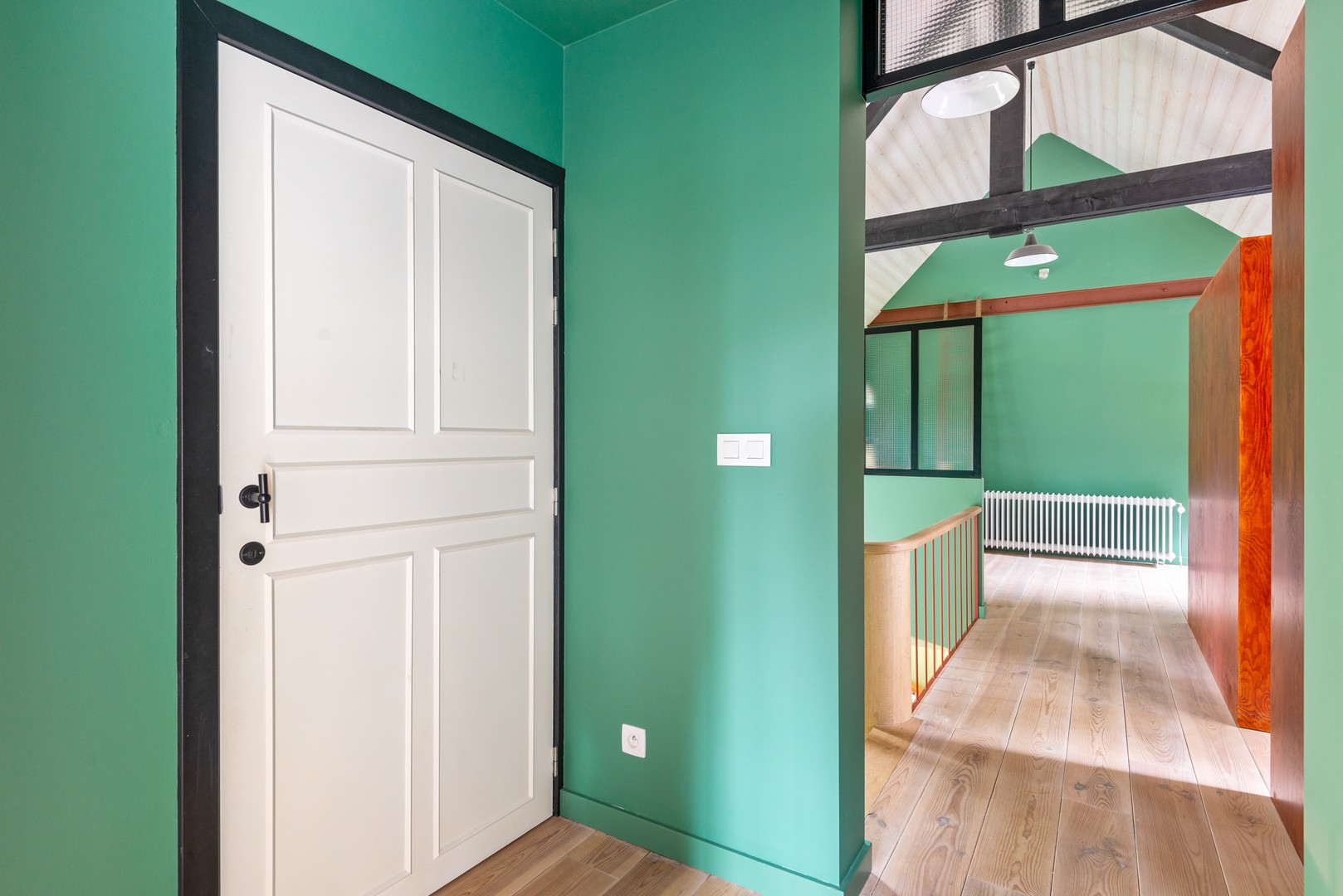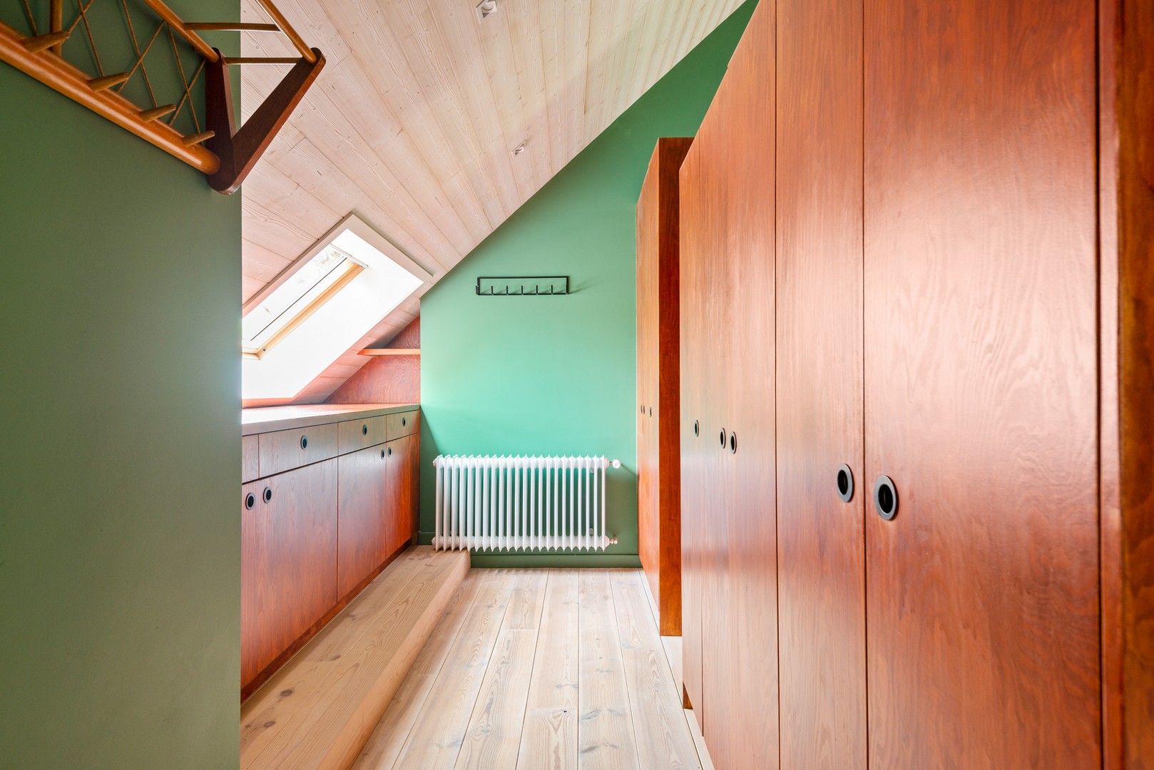 - Masterslaapkamer: via de trap bereikt u de zolderkamer van ongeveer 16 m² – een rustige, afgezonderde plek waar u volop van uw privacy geniet, terwijl u toch verbonden blijft met de rest van de woning