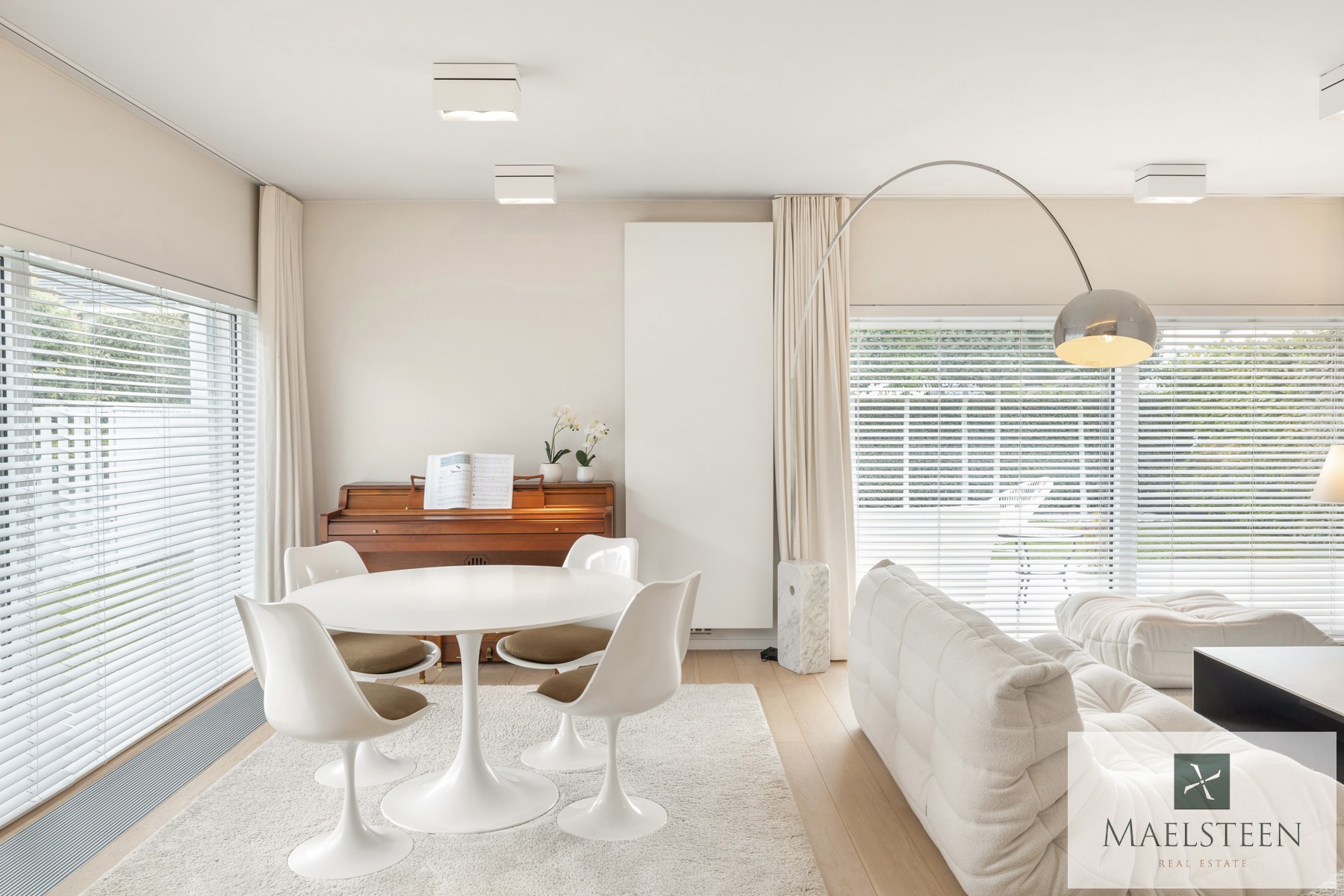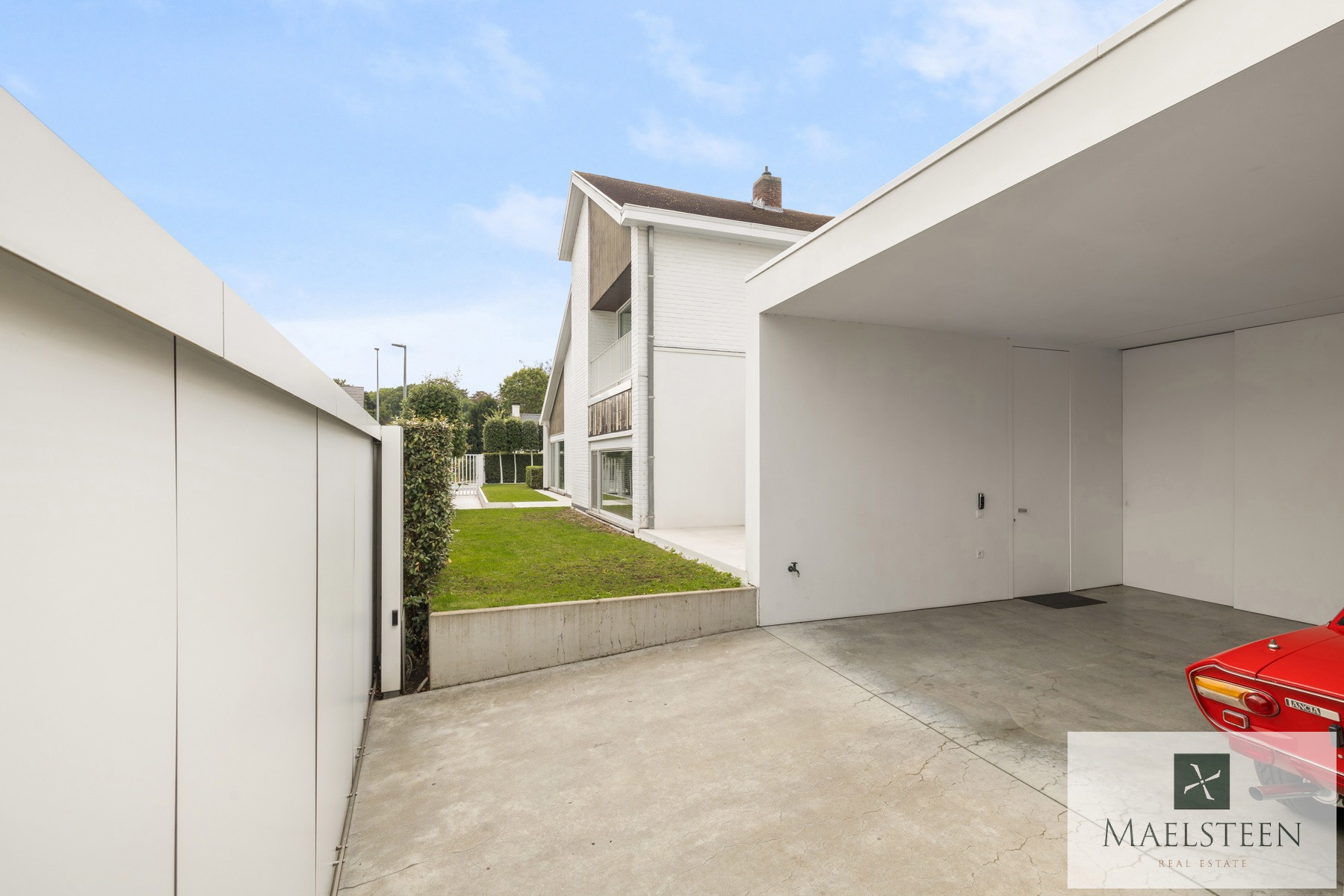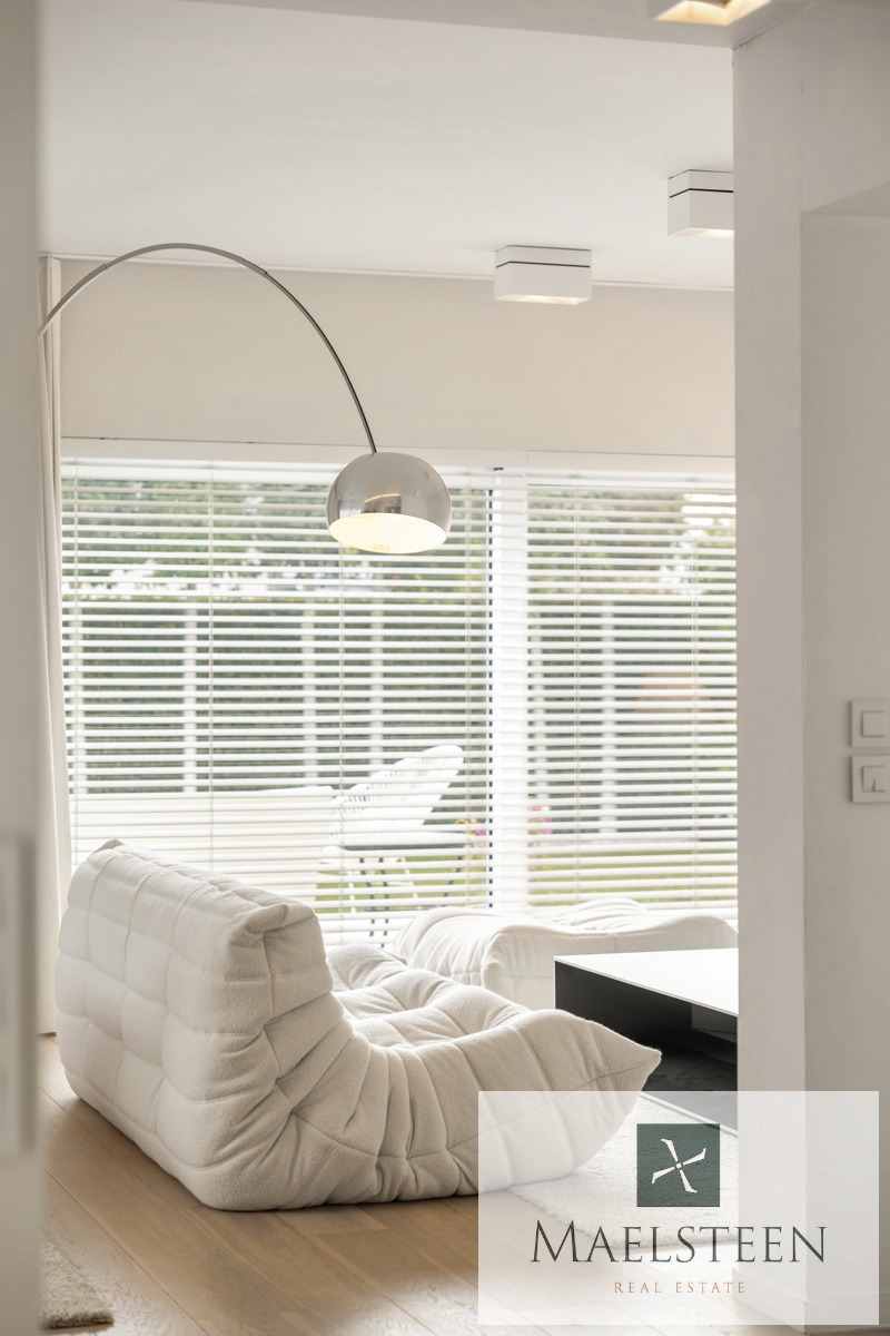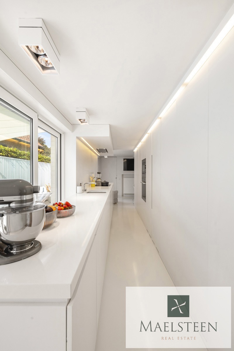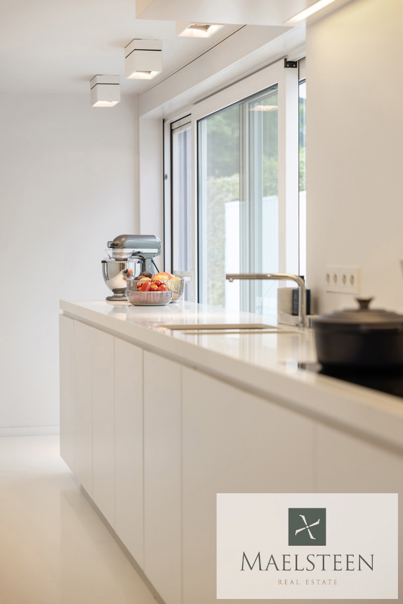 Samenstelling: Inkomhal met gastentoilet. Ruime bureau. Zeer lichtrijke woonkamer (salon met gezellige gashaard en eetplaats) met veel ingemaakte kasten. De keuken werd in de lengte opgevat en is voorzien van de gangbare zeer kwalitatieve keukentoestellen (alles van Miele, behalve de Novy-dampkap). Vanuit de keuken heeft u toegang tot een uitermate gezellig en functioneel terras. In de keuken is ook een comfortabele ontbijthoek voorzien. Verder op het gelijkvloers werd een praktische wasruimte voorzien, en heeft u bij de carport ook extra bergruimte (fietsenkot, vuilnislokaal en tuinberging). De carport is toegankelijk via een geautomatiseerde schuifpoort. De tuin rondom de woning werd door een tuinarchitect uitgetekend en is zeer onderhoudsvriendelijk.