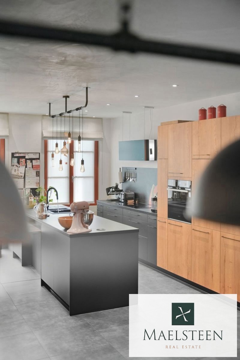 Samenstelling: Inkomhal met vestiaire en gastentoilet. Grote leefruimte met verrassend hoog plafond en veel lichtinval. Deze leefruimte omvat het salon, de eetplaats en de uitermate functionele open keuken met eiland. Aan de leefruimte ligt een gezellig stadsterras met zon na de middag. Op het verdiep is er ruime overloop/nachthal voorzien, een eerste slaapkamer met douchekamer en een tweede slaapkamer (masterbedroom) met dressing en aansluitende luxueuze badkamer. Op het dak werd nog een bijkomend zeer zonnig terras ingericht.