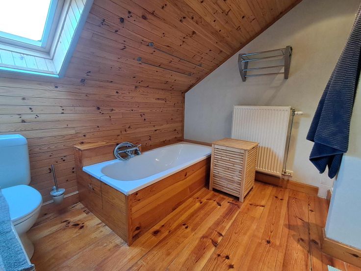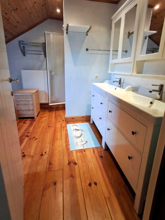 •Badkamer met ligbad, douche, dubbele lavabomeubel en toilet