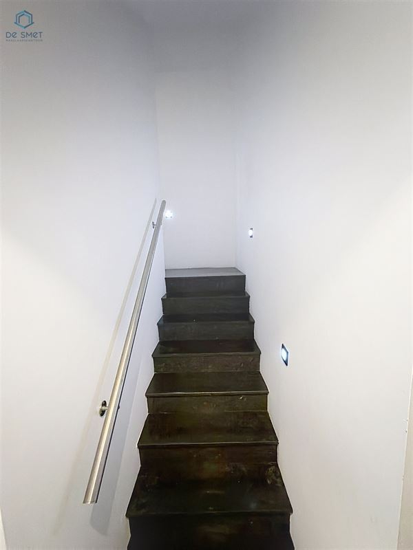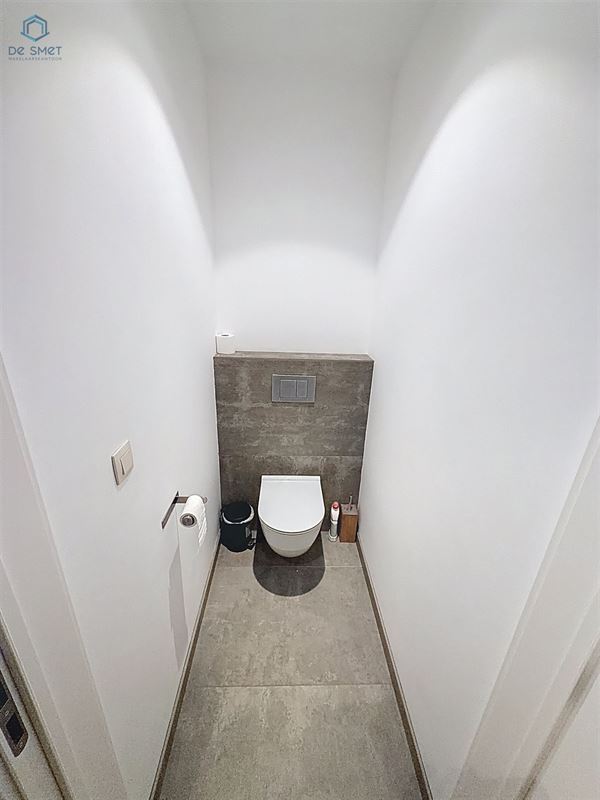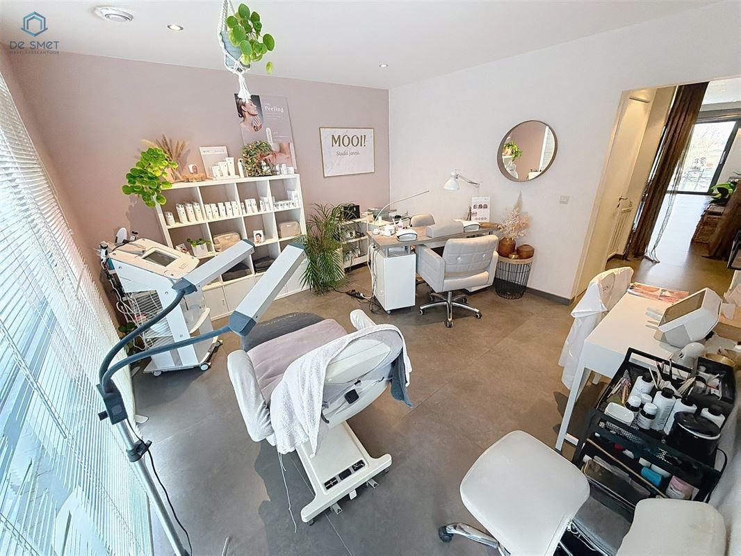 U wordt verwelkomd in een inkomhal die toegang geeft tot een multifunctionele commerciële ruimte, perfect geschikt als bureau, praktijkruimte of extra slaapkamer. Verder beschikt de woning over een gastentoilet en een ruime, lichtrijke leefruimte met open keuken en kookeiland. Aansluitend is er een praktische berging voorzien.