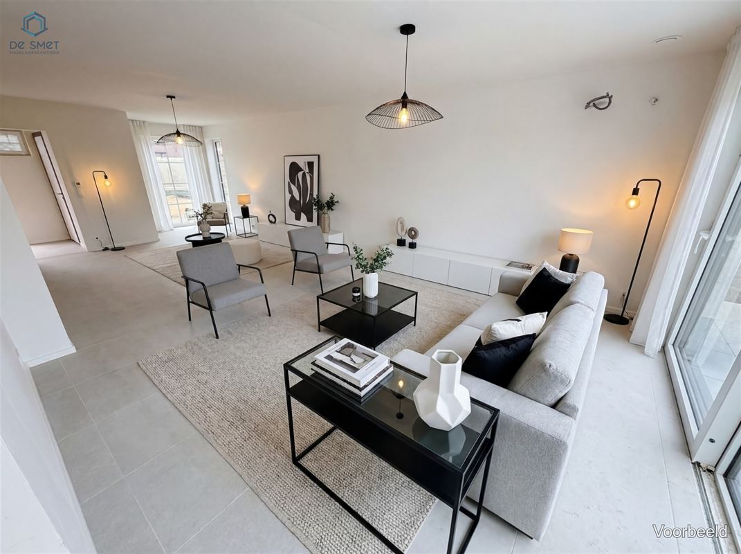 Bij binnenkomst wordt u verwelkomd in een stijlvolle leefruimte die perfect is voor zowel gezellig samenzijn als ontspanning. Het slanke, moderne design van de keuken straalt elegantie uit en is volledig uitgerust met hoogwaardige toestellen, ideaal voor de kookliefhebber.