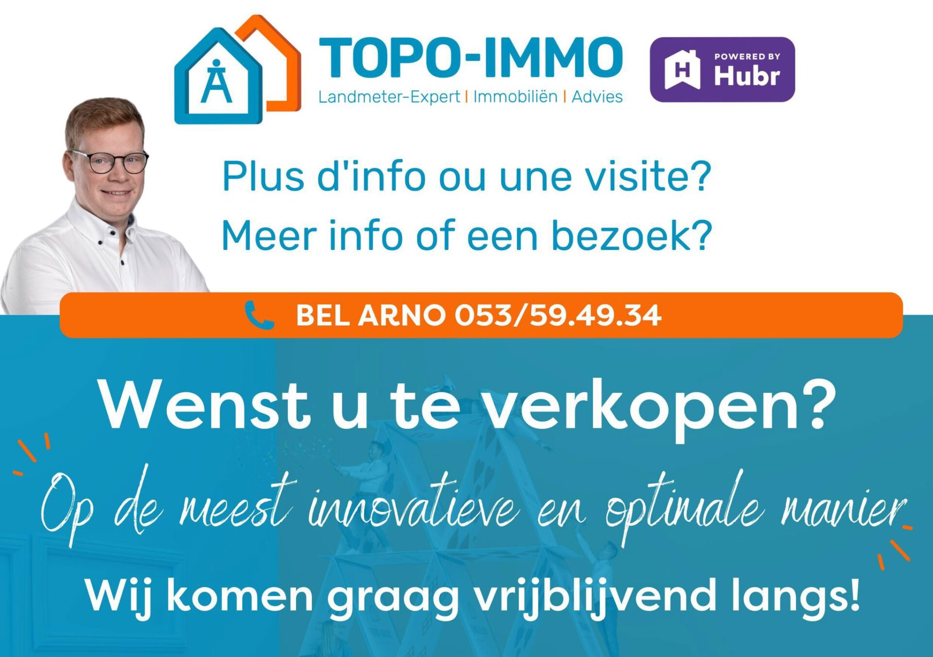 Voor meer informatie over deze eigendom en het verkoopproces (online biedingsplatform COVAST), kunt u vrijblijvend contact opnemen via 053/59.49.34 of arno@topo-immo.be