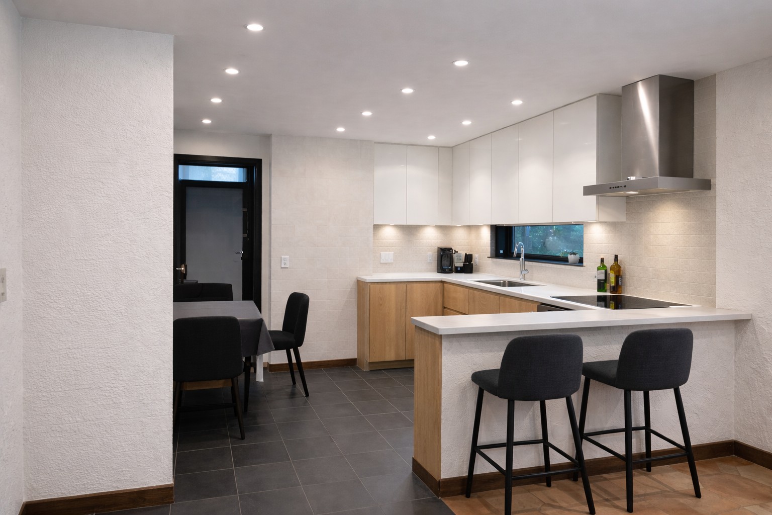 - Hellende oprit naar twee garagepoorten en kelder 130m² met tal van opties: ideaal voor zelfstandigen, hobbyruimte, atelier, opslag of extra parkeergelegenheid.