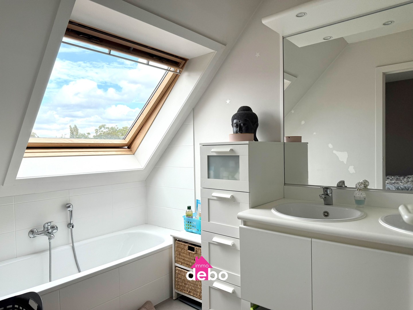 – 2 volwaardige badkamers, 1 met ligbad en dubbel lavabomeubel alsook 1 met douche, 2de toilet en lavabomeubel