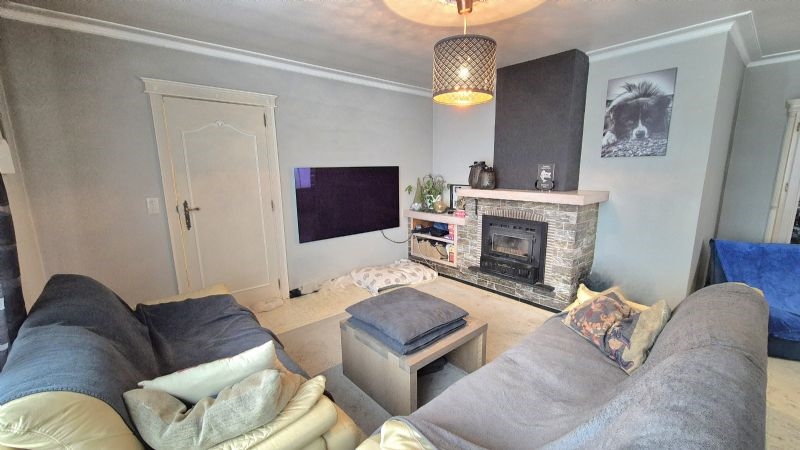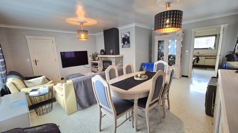 •Lichtrijke leefruimte met open haard op hout, eet- en zithoek