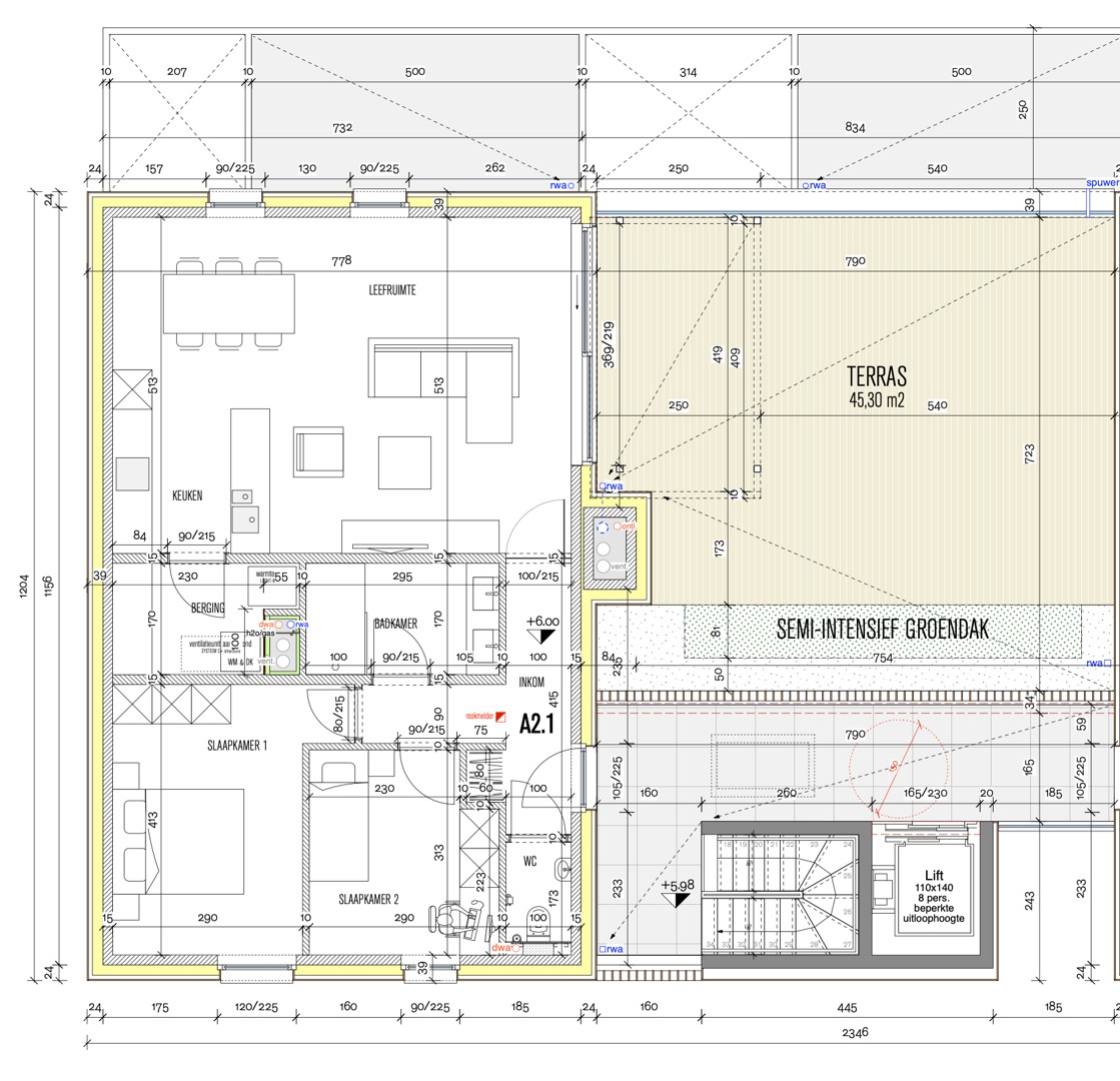 Penthouse met 2 slpkrs en riant terras van 58,74m² in Genk